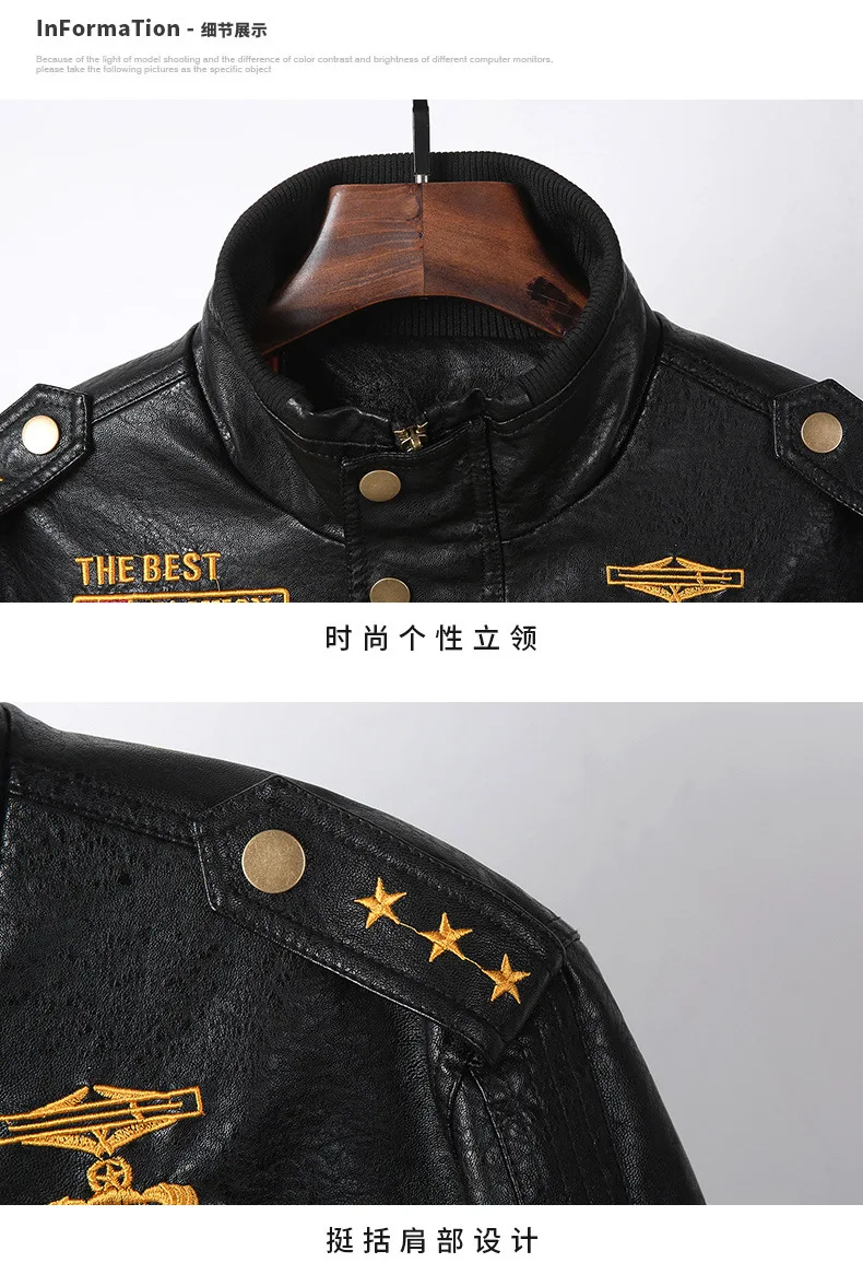 New pu leather jacket for men in autumn and winter, motorcycle jacket embroidered stitching, EU and US men’s leather jacket