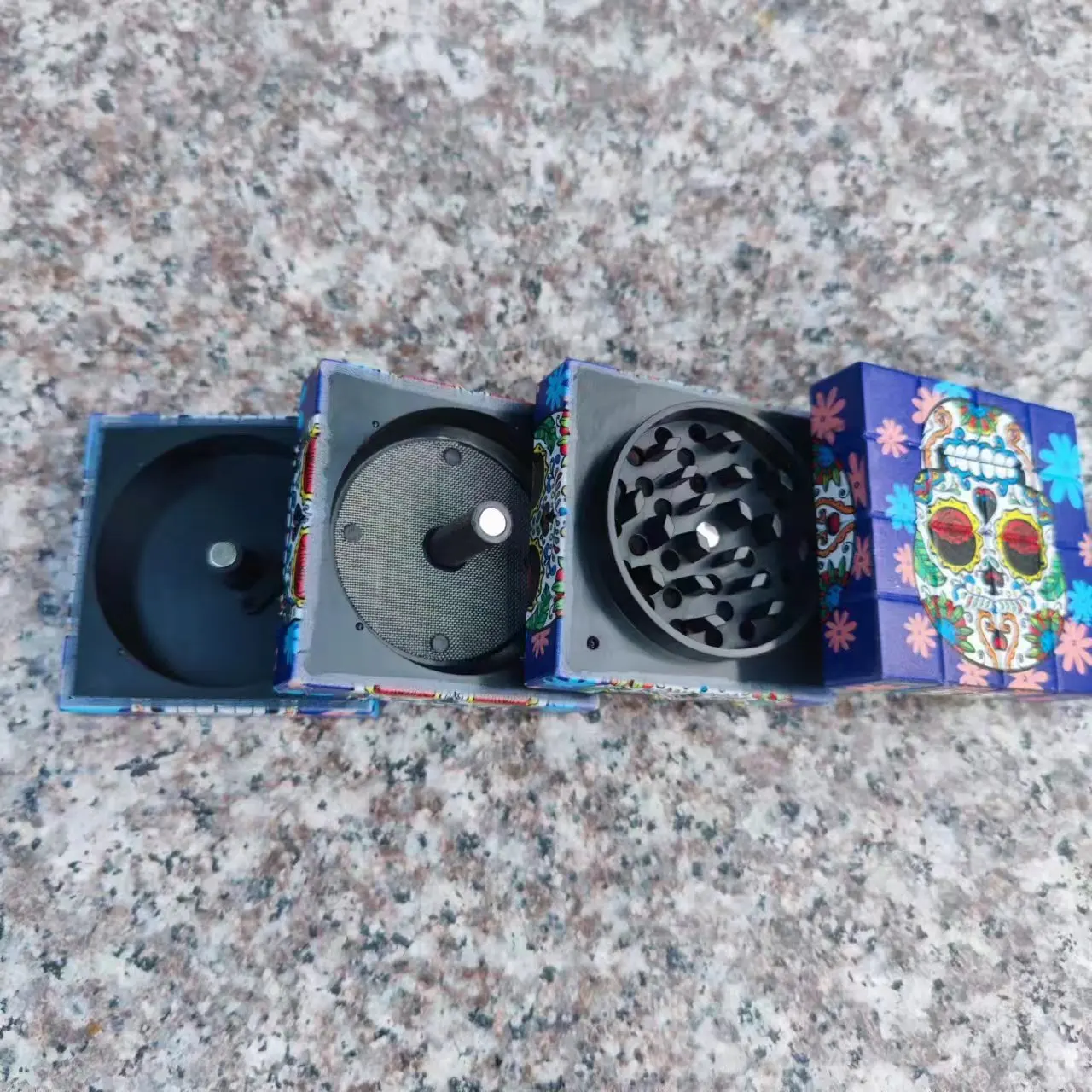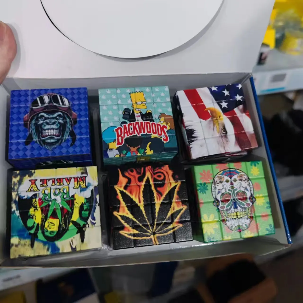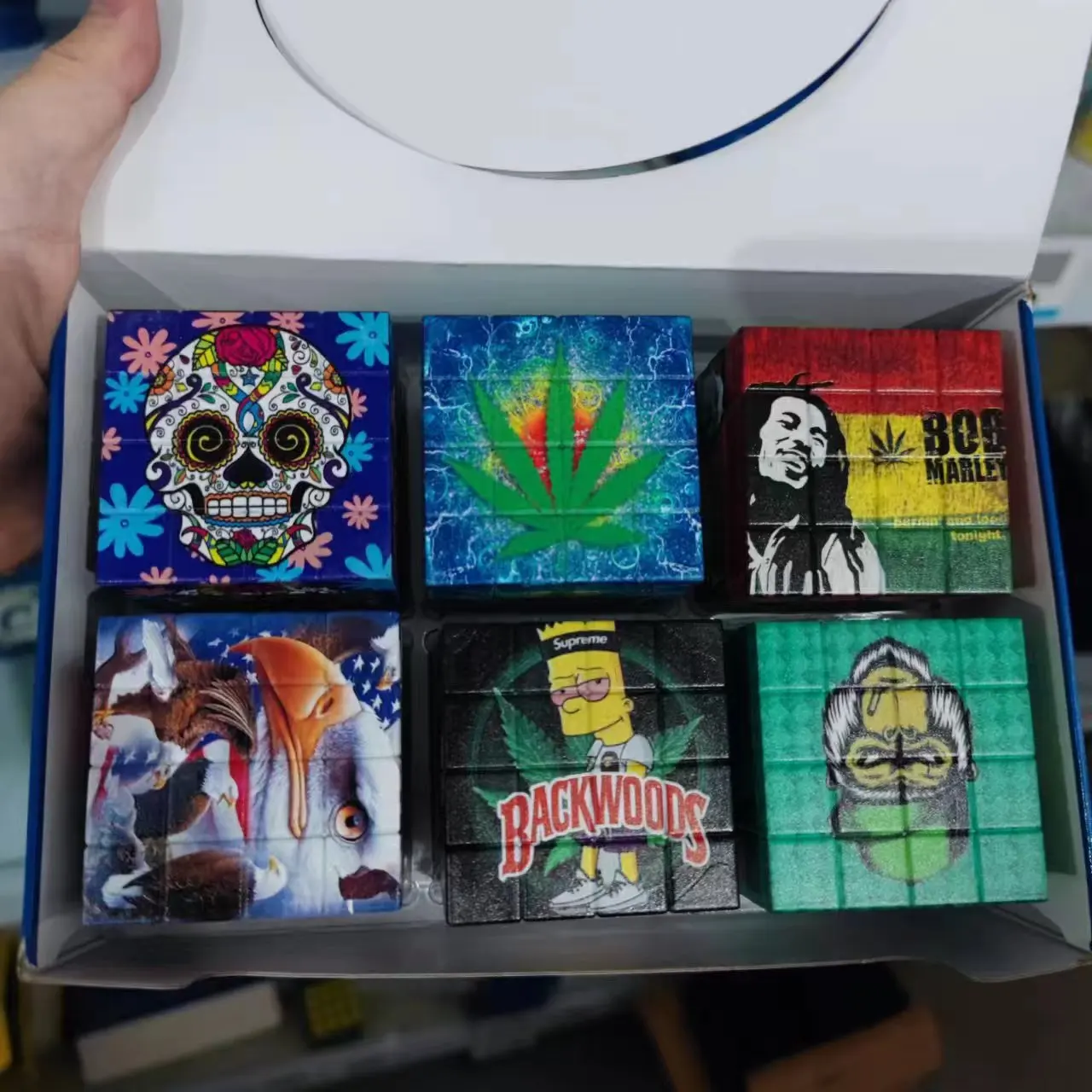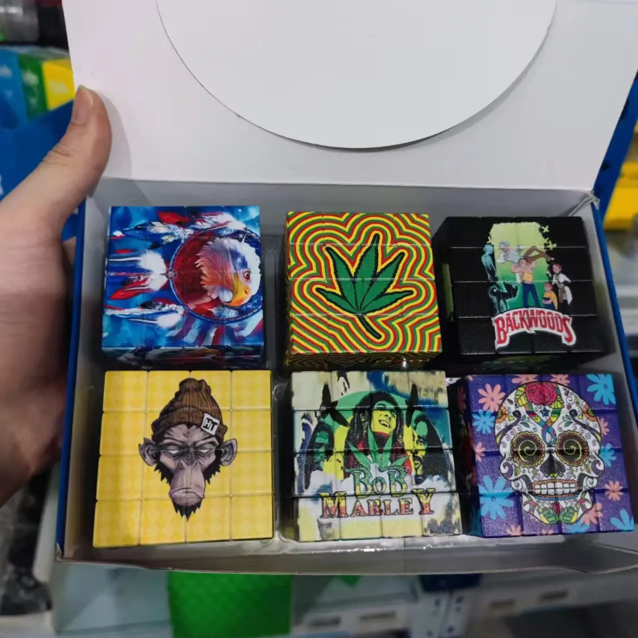 New smoke grinder with a diameter of 58mm, creative cube with multiple patterns, UV color printing, plastic zinc teeth grinder