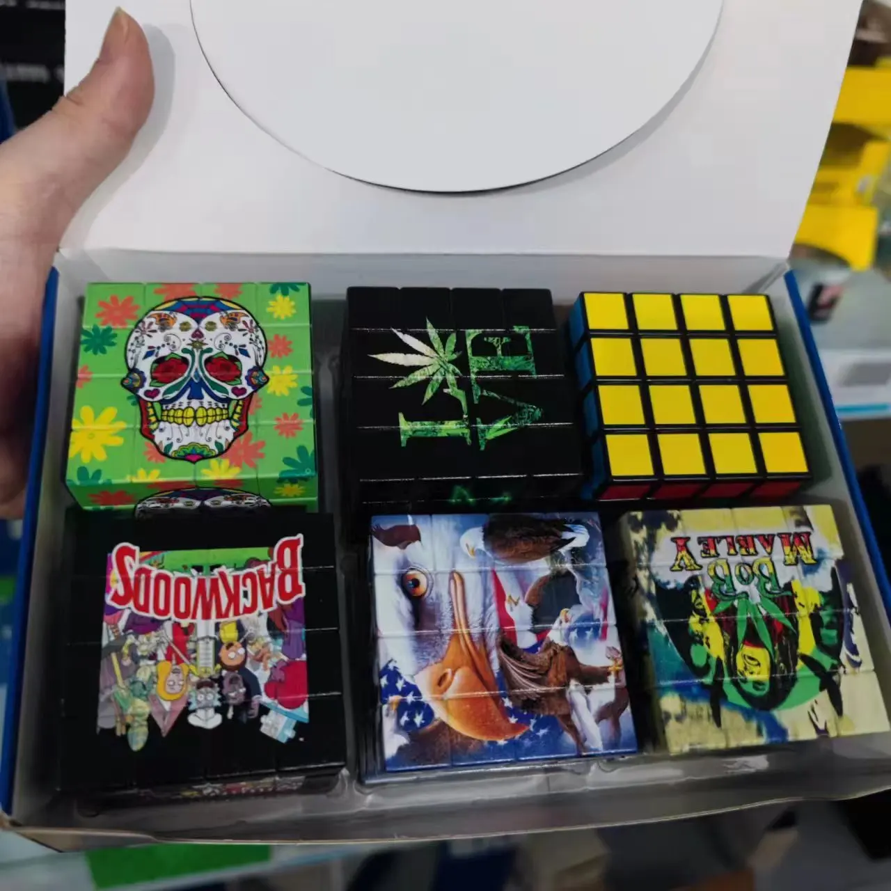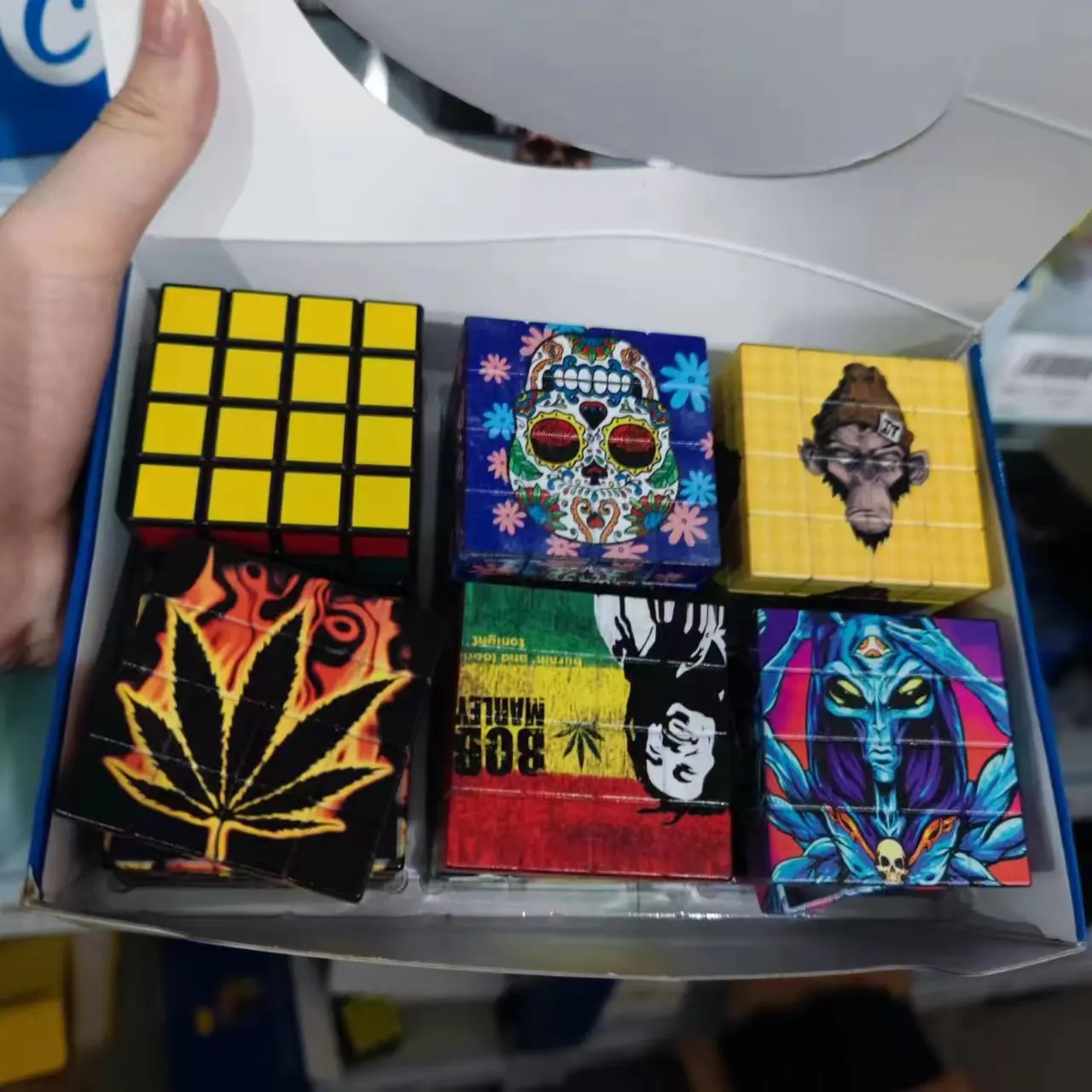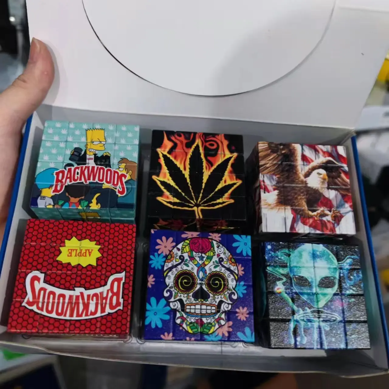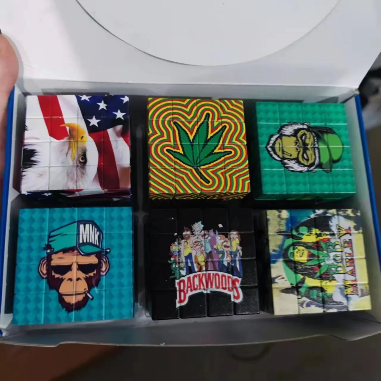 New smoke grinder with a diameter of 58mm, creative cube with multiple patterns, UV color printing, plastic zinc teeth grinder