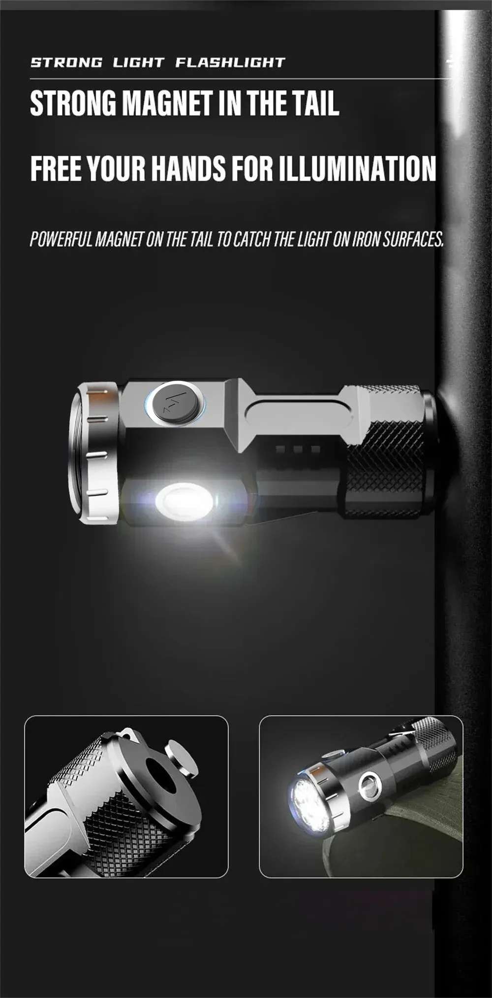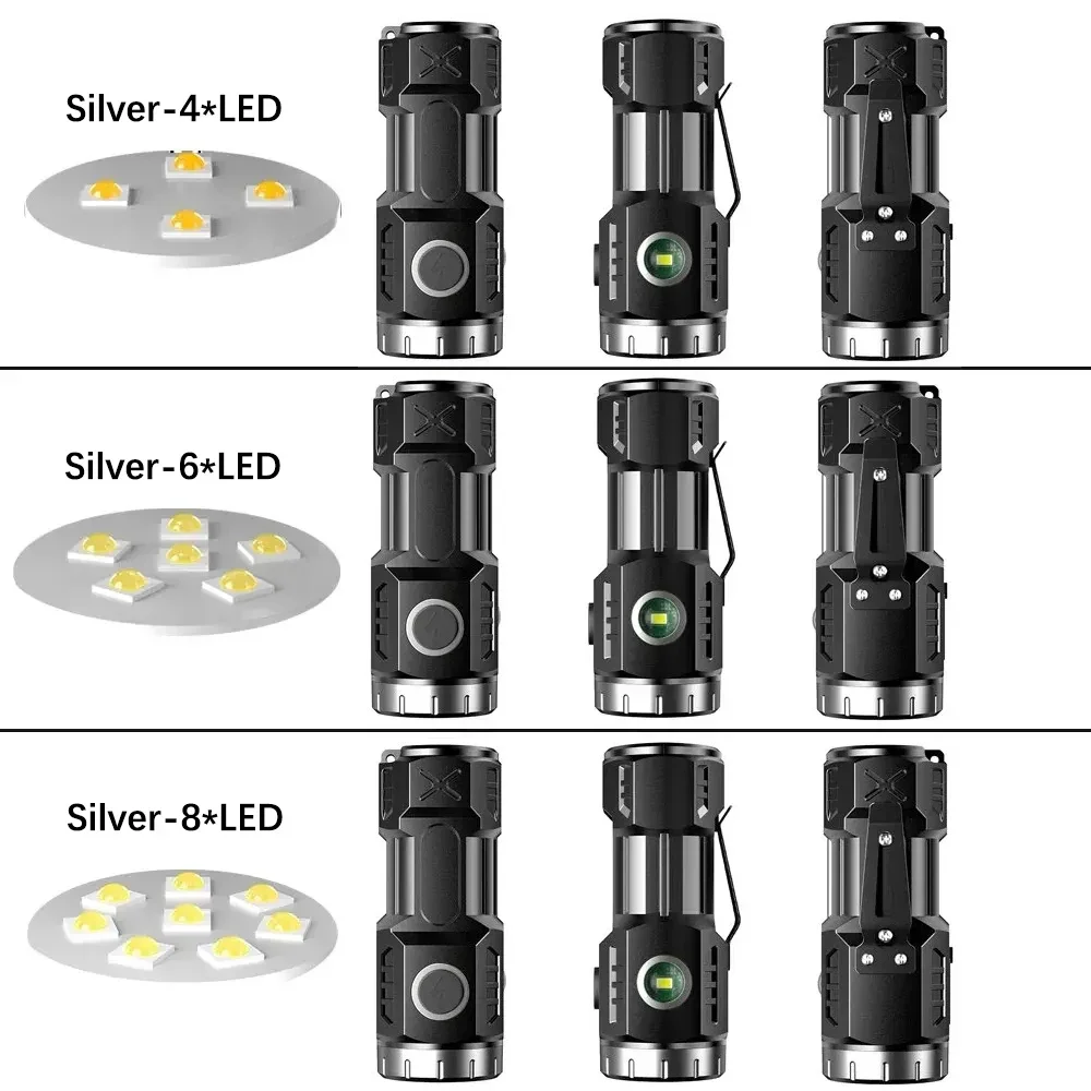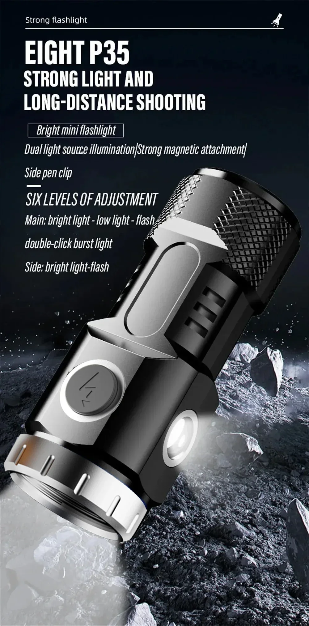 New Ultra Bright Flashlight 4/6/8*P35 LED Mini Super Bright Torch USB Rechargeable Waterproof Light With Magnet Emergency Lamp