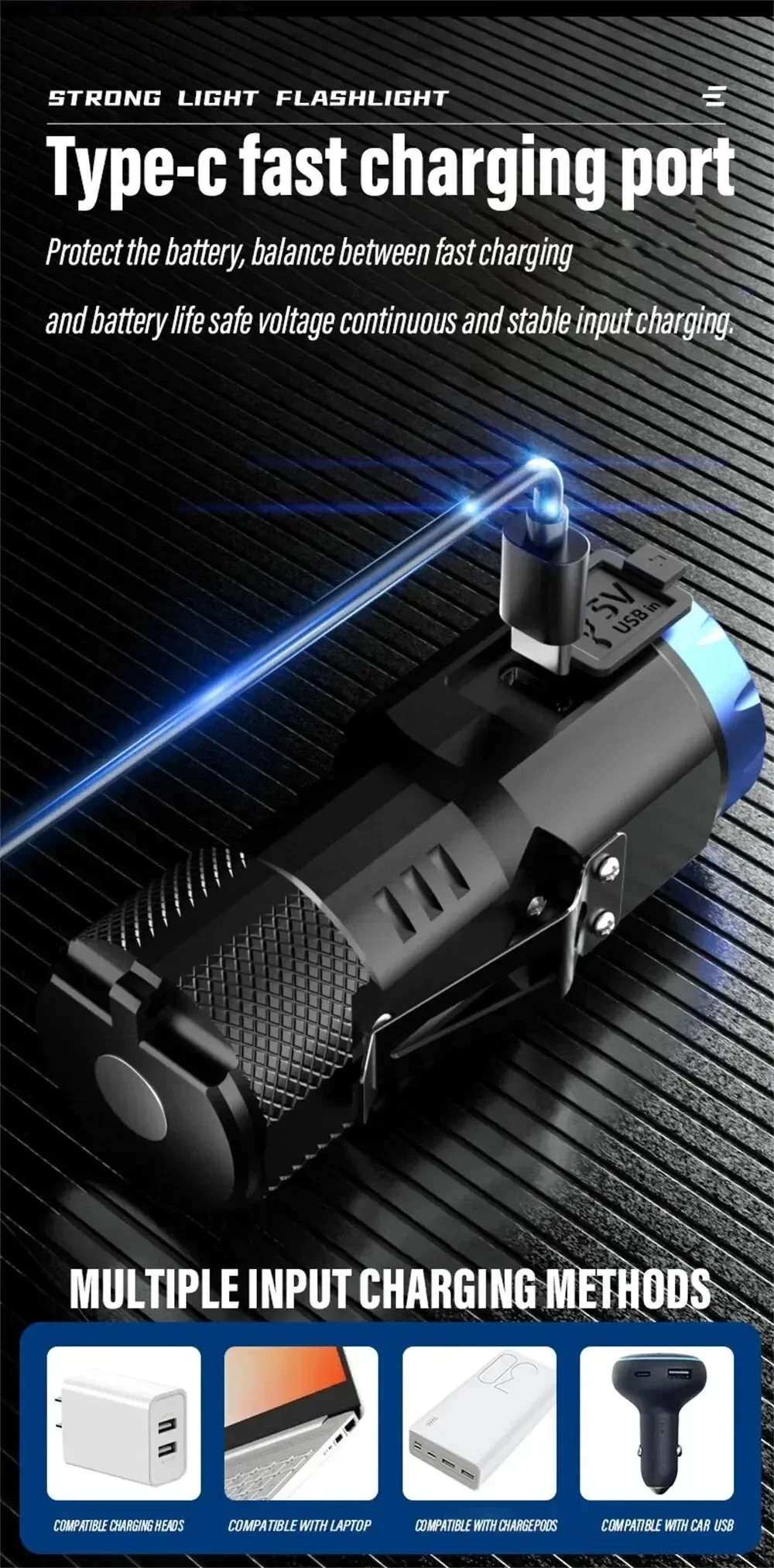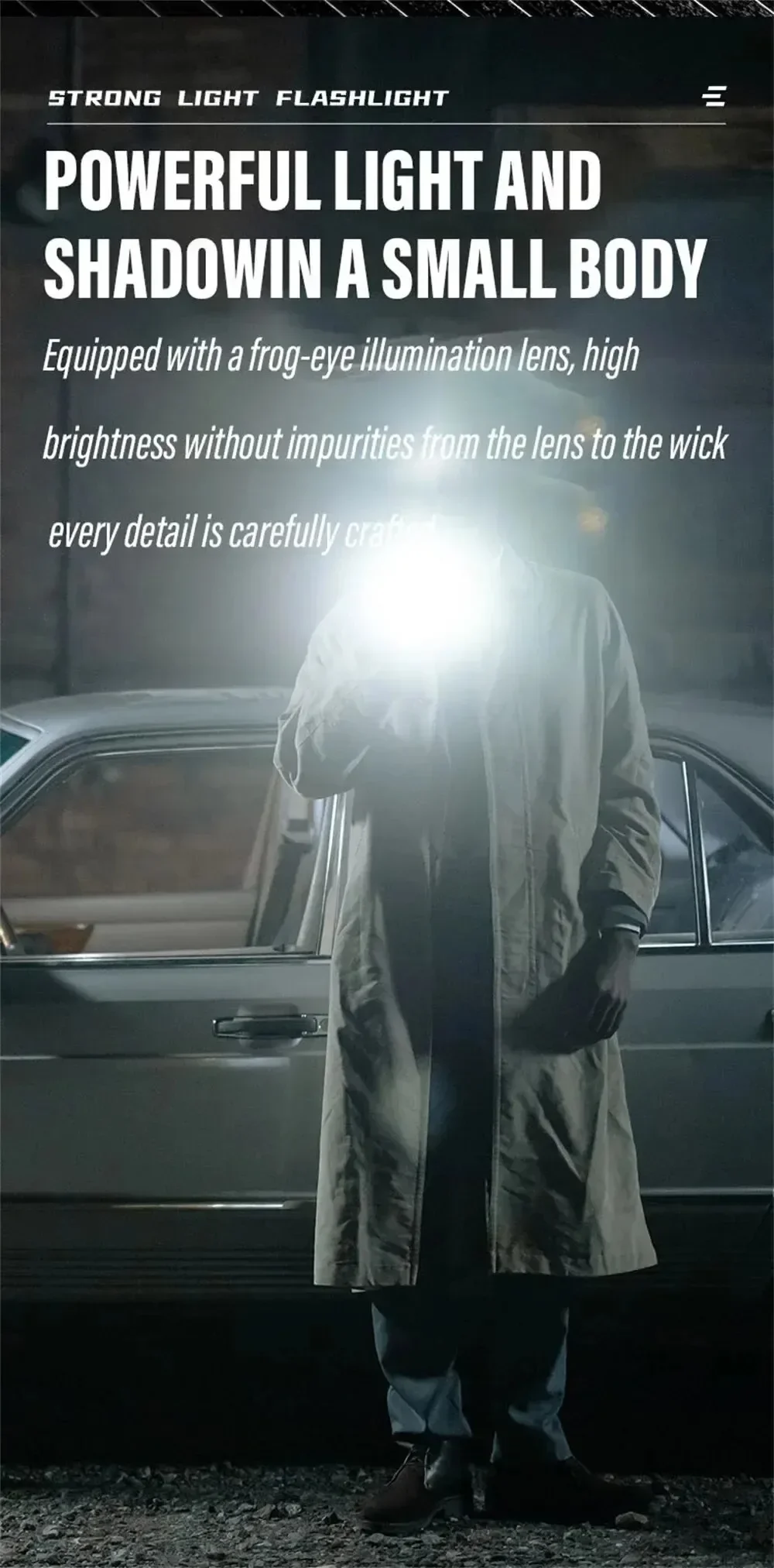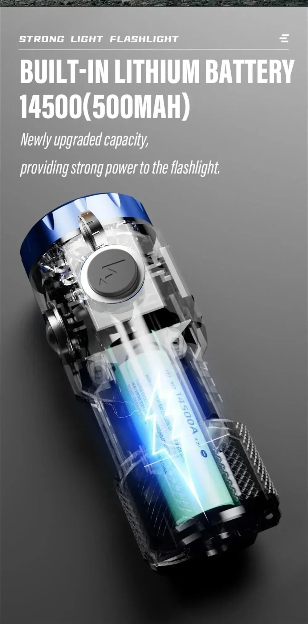Newly upgraded capacity, providing long battery life for the flashlight.Strong magnetic tail, side pen clip
