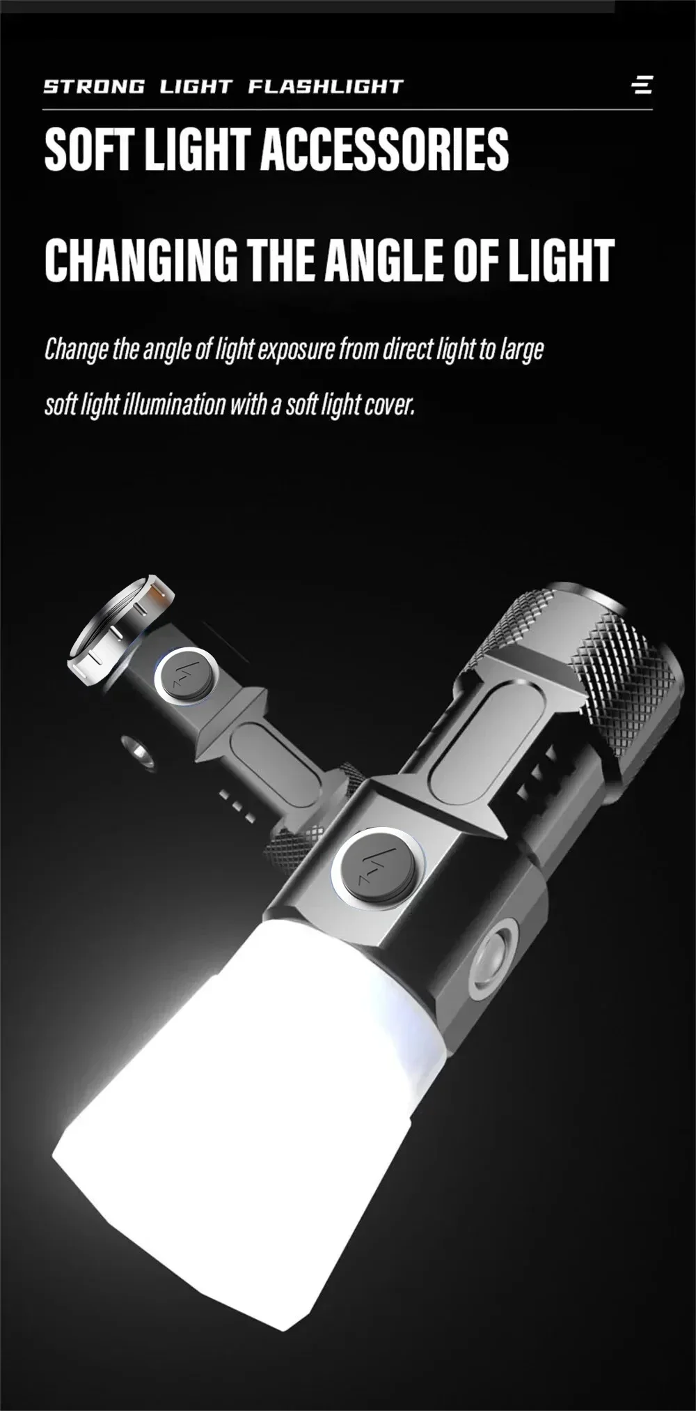 *Soft light cover: we give you a soft light cover for free, when you put the cover on the head of the flashlight, the flashlight can be turned into a camping light, very practical.