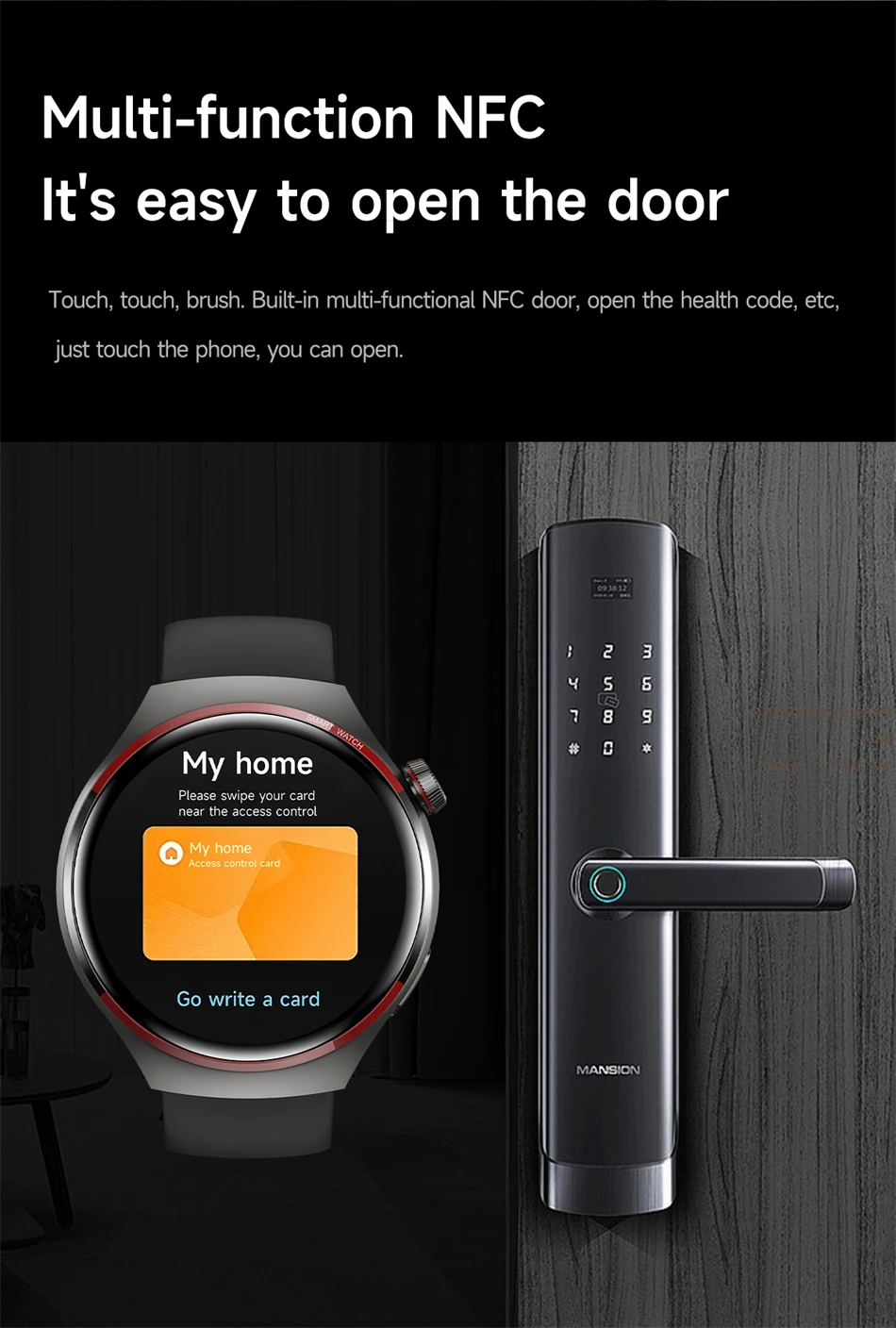 Dear customer, thank you very much for your support, this is a multifunctional smart watch! This product has many very useful features! For example, with the NFC function, you can open the door through your watch! Bluetooth calling function, you can make calls directly after connecting to the Bluetooth of your mobile phone! AI voice assistant function, enable watch functions through voice! The sports mode function can monitor your exercise time, distance, steps, calorie consumption, heart rate changes, etc. in real time! There are also some medical functions that can monitor body temperature, sleep, blood pressure, blood oxygen, and heart rate to keep an eye on your health! These are very useful features!