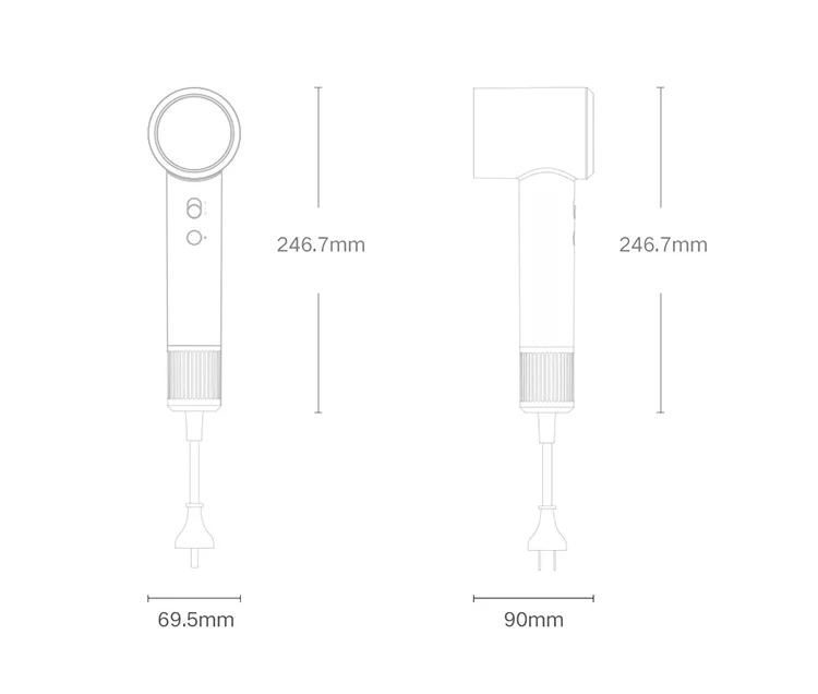 Weighing only 338g, approximately equivalent to 1 bottle of 350mL mineral water, with a handle length of only about 18cm and a 9cm short nozzle, the overall weight distribution makes it effortless to dry long hair.