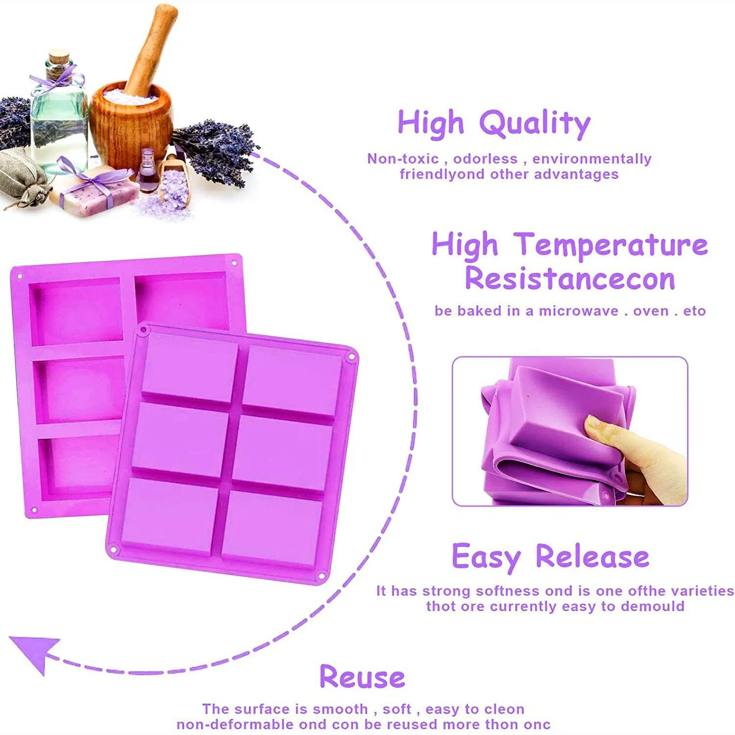 2) Safe Grade Material: Our 6 cavities square silicone soap molds are made of 100% pure, professional quality grade silicone. Meets BPA, PVC, and Phthalate free. Very practical and durable.'