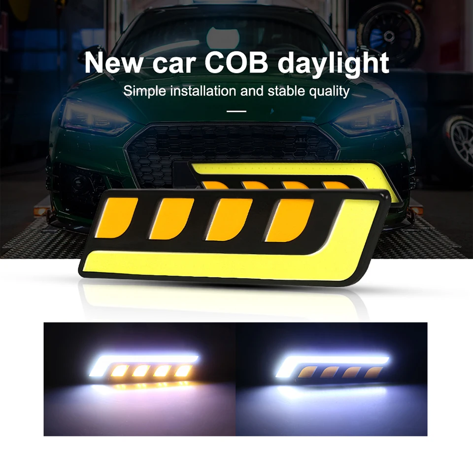 Nlpearl 2x Car Light Assembly DRL Led COB Daytime Running Lights Dual Color White Yellow Auto DRL External Auto Daylight 12V