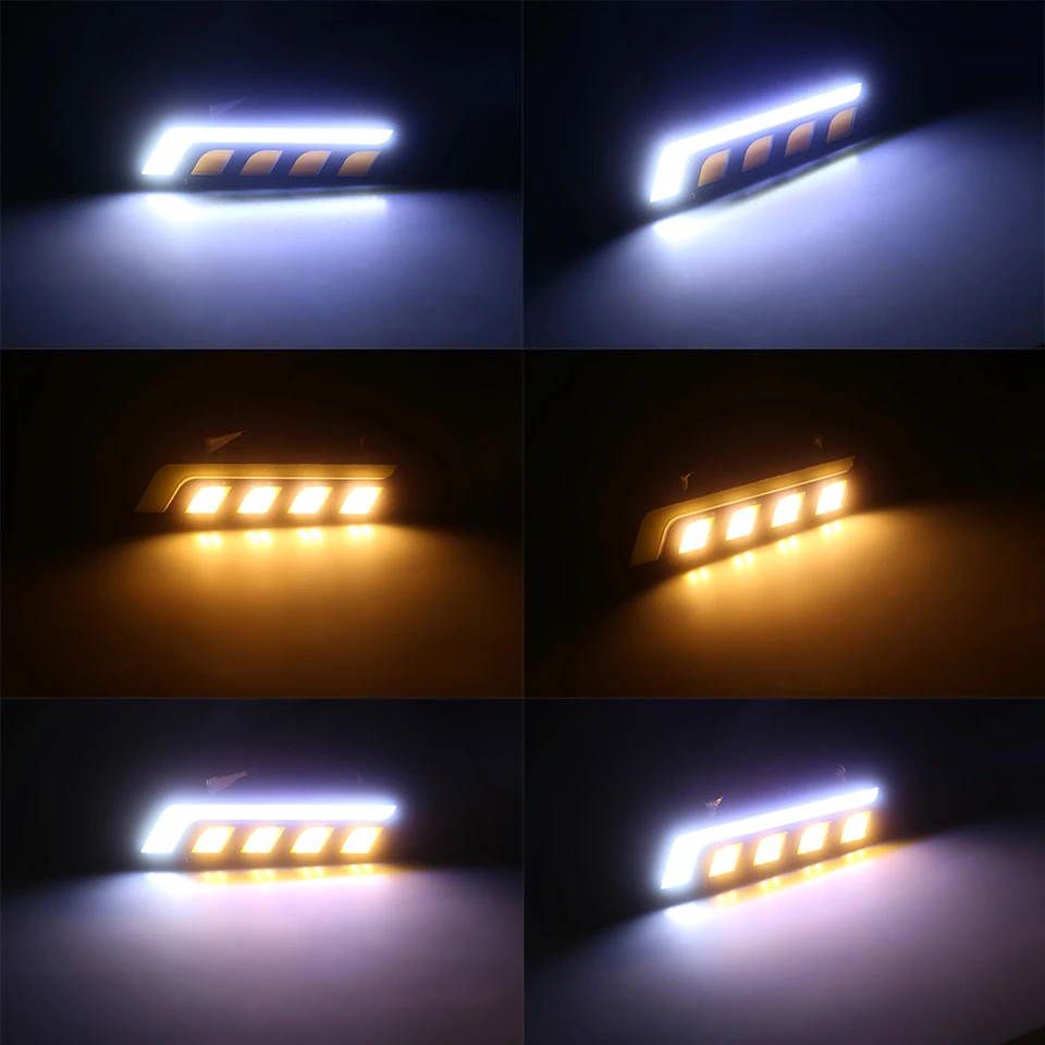 Nlpearl 2x Car Light Assembly DRL Led COB Daytime Running Lights Dual Color White Yellow Auto DRL External Auto Daylight 12V