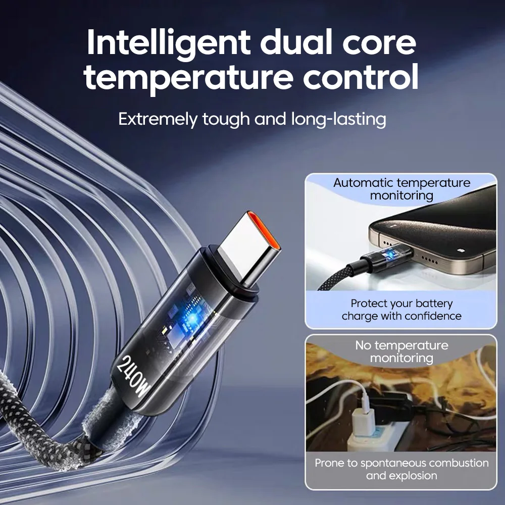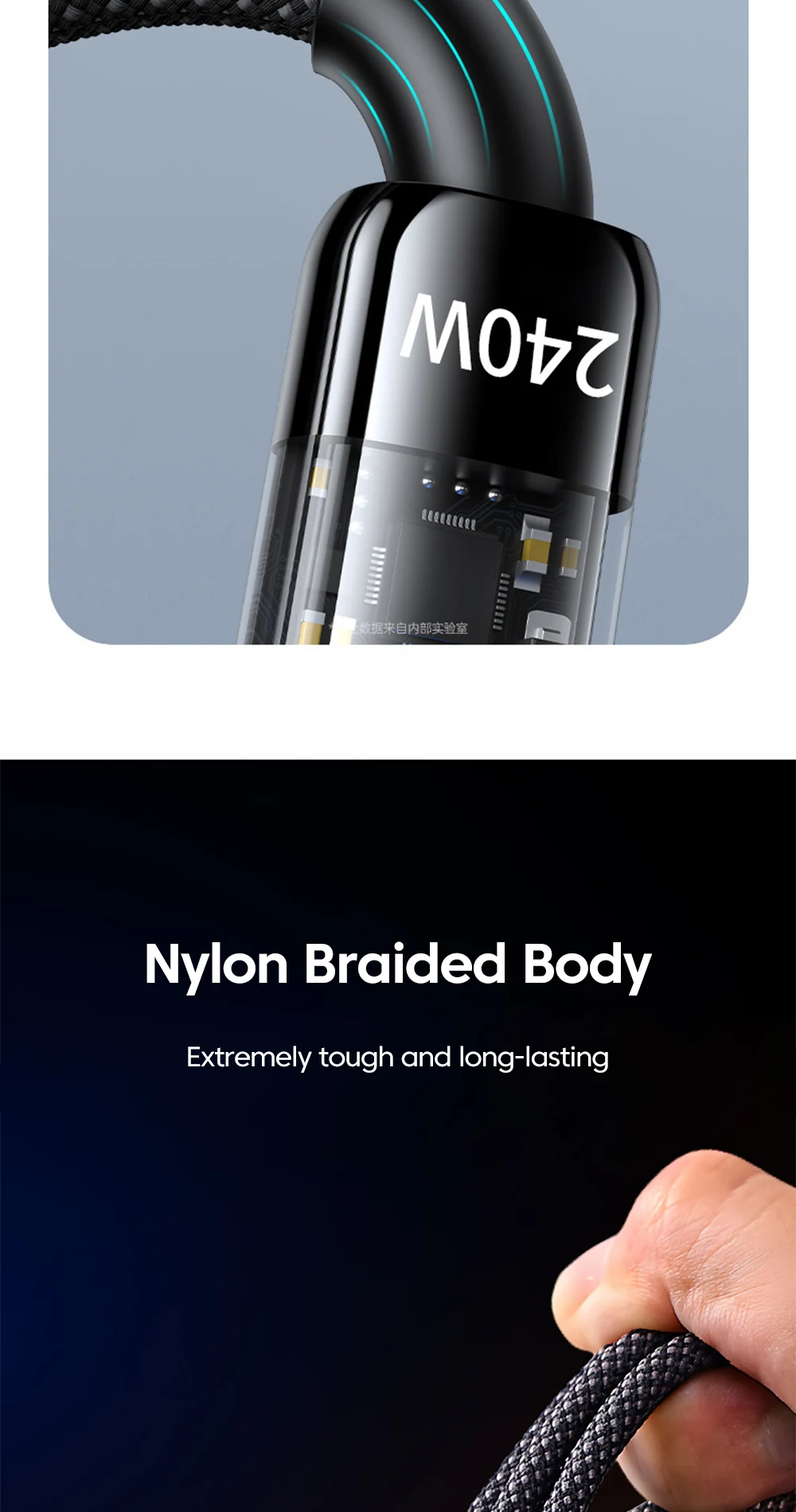 NNBILI USB C Quick Charging Cable 240W Nylon Braided Transparent Type C High-speed Charger Wire for Samsung Huawei Mi Data Line