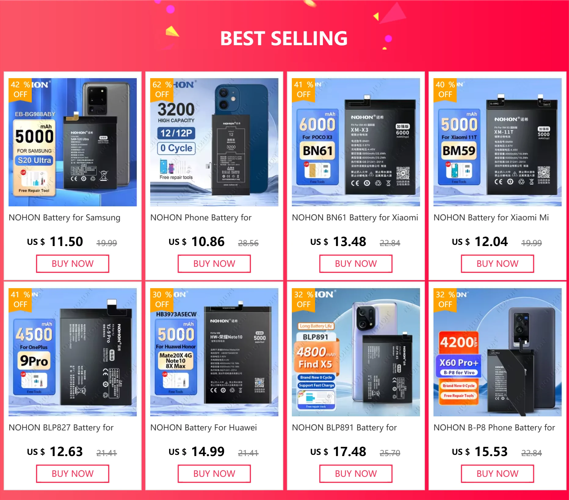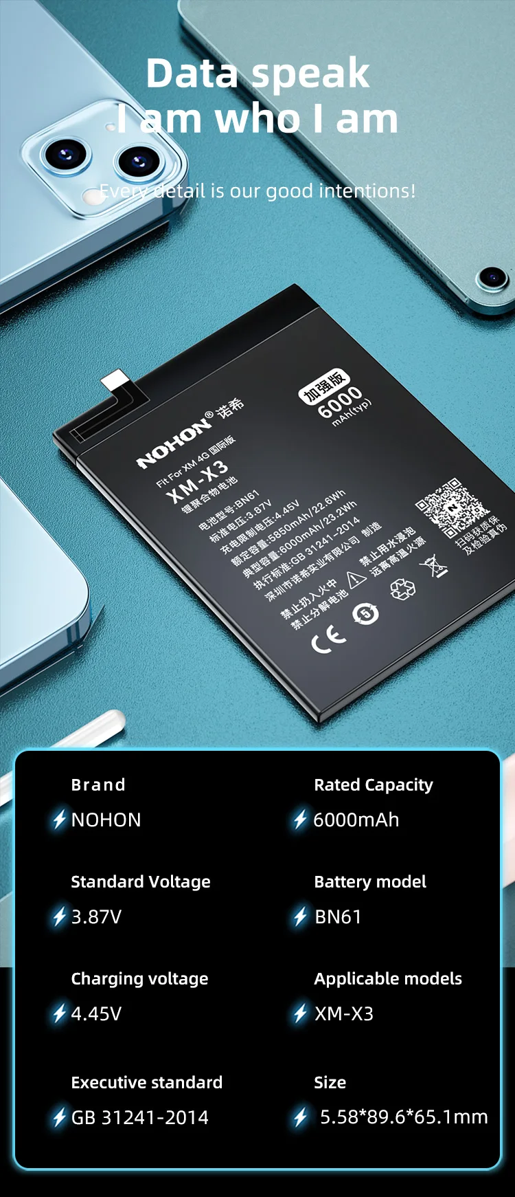 - Model: NOHON Battery for XiaoMi POCO X3 BN61
