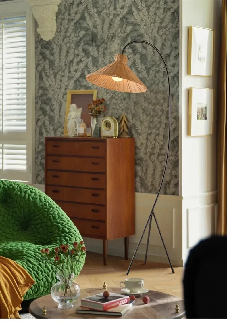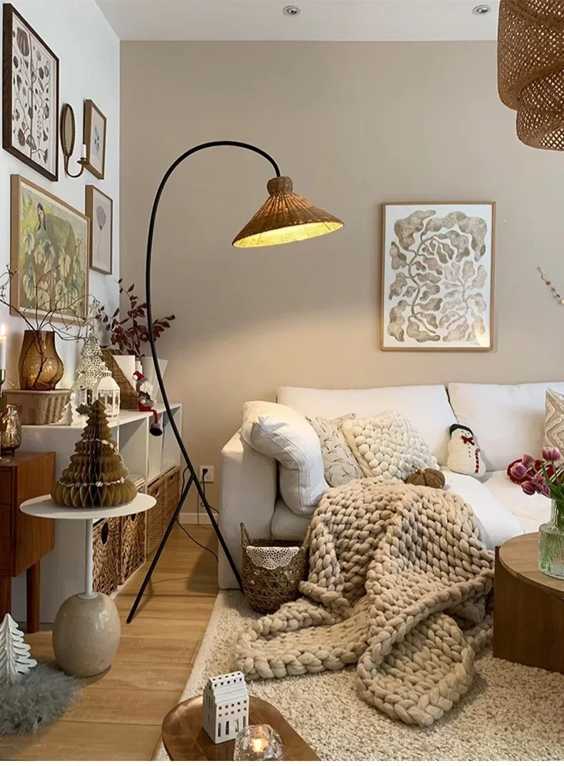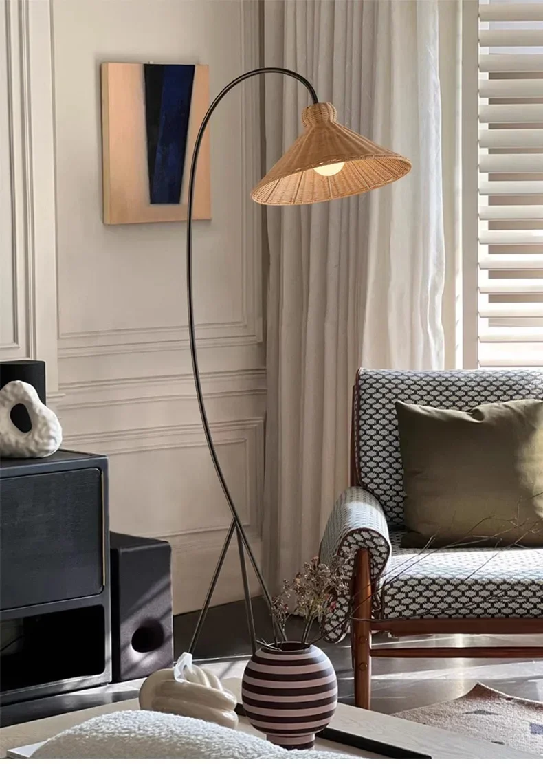 【Product Name】Modern Nordic Minimalism Rattan Art Sofa E27 Floor Lamp Homestay Living Room Designer Light Bedroom Home Lighting Decor Fixtures