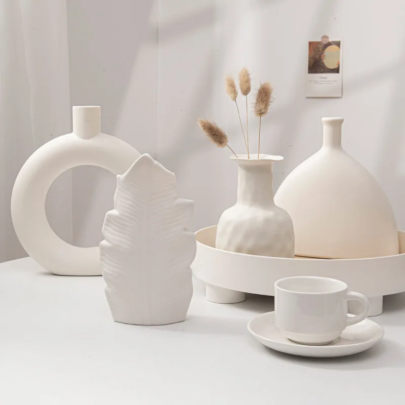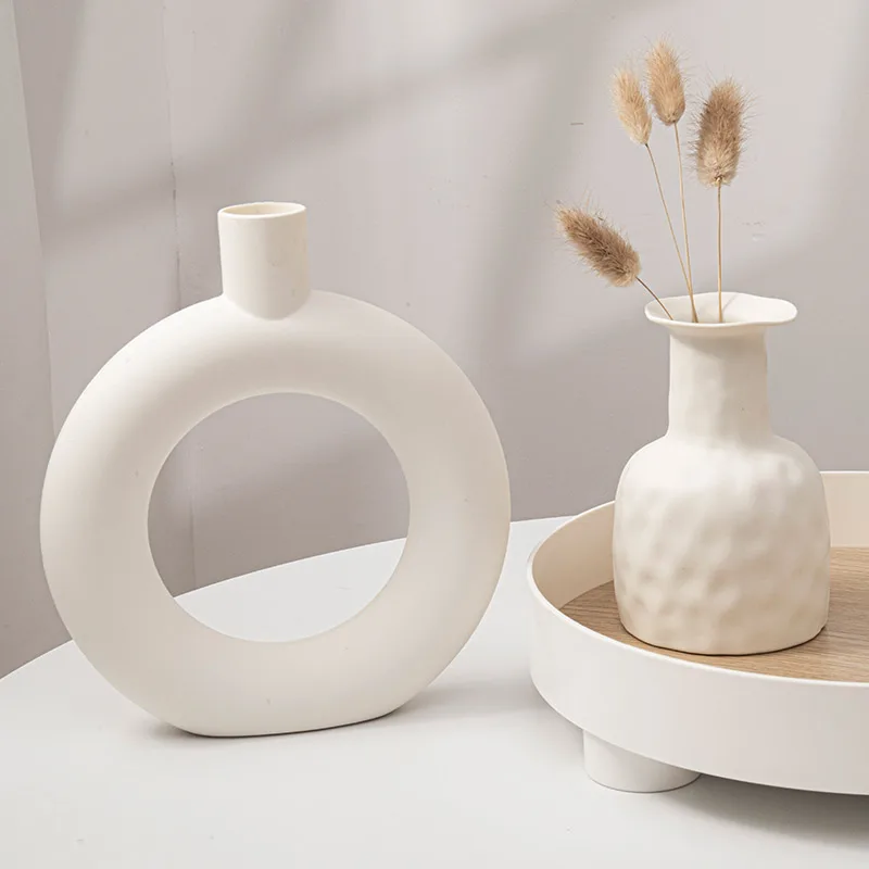Nordic Plastic Vase White Imitation Ceramic Flower Pot Plants Vases Home Wedding Decorative Dining Table Decor Ваза Для Цветов