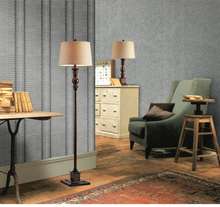 Nordic Retro American Floor Lamp for Living Room Bedside Bedroom Standing Light Fabric Home Decor Hotel Switching Lighting
