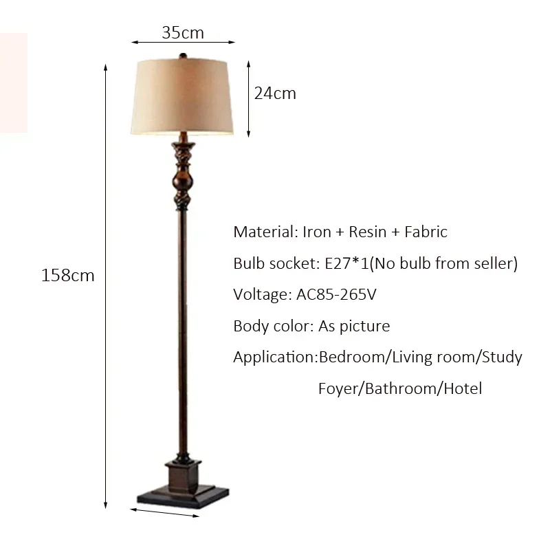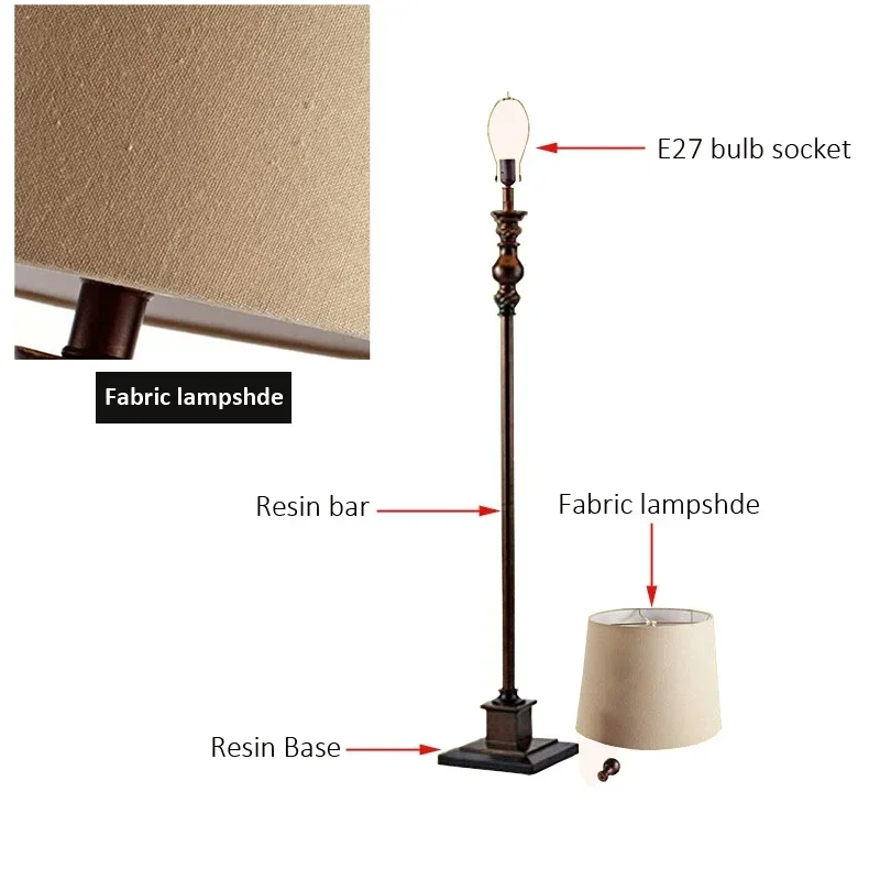 Hign-concerned Chemical : None Installation Method : self-contained Luminous Flux : <60 Lighting Area : 10-15square meters Warranty : 2 years Shade Direction : Up & Down Is Dimmable : No Technics : Plain Dyed Light Source : Energy Saving Is Bulbs Included : No Wattage : 16-20W Origin : Mainland China Material : RESIN Power Source : AC Item Type : Floor Lamps Number of light sources : 1 Switch Type : Touch On/Off Switch Voltage : 90-260V Shade Type : Fabric Style : vintage