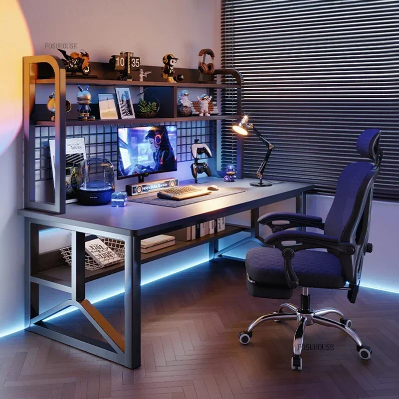 Nordic Wooden Computer Desks Home Office Furniture Student Writing Table Integrated Desk Bookshelf Simple Desktop Gaming Desk AA