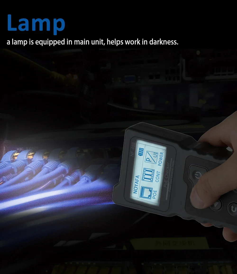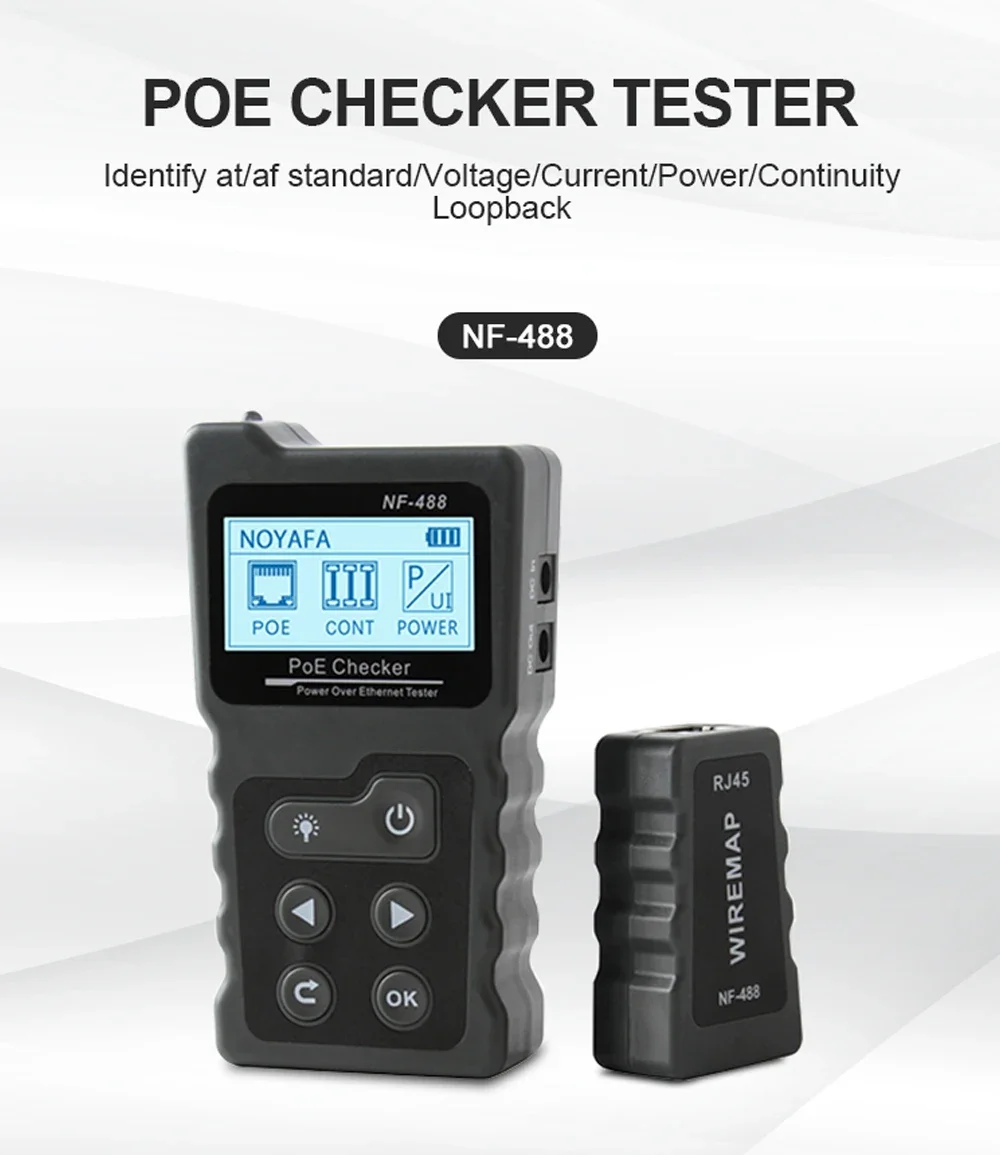 Noyafa NF-488 LCD Network Cable PoE Checker Inline Voltage Current Tester With Cable Tester Lan Tester Wire