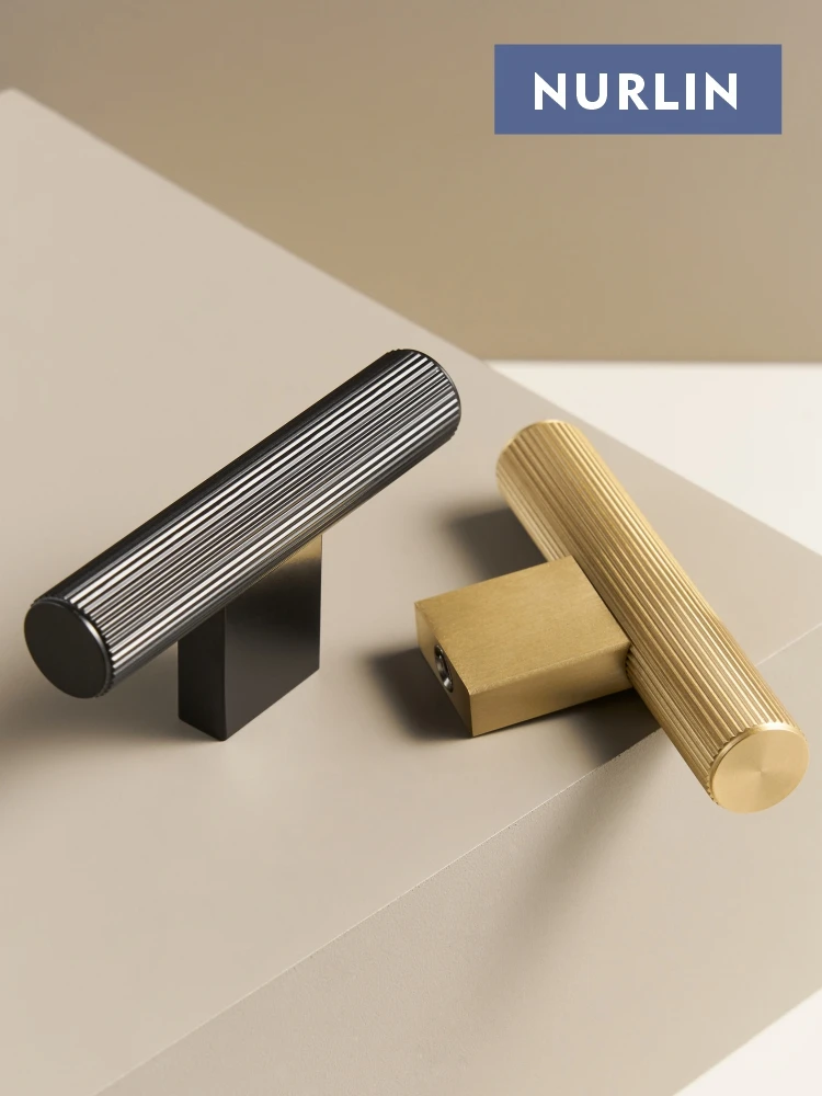 Nurlin Solid Brass New Linear Cabinet Knobs Long T-bar Furniture Wardrobe Drawer Handles Pull Closet Bars Square Feet