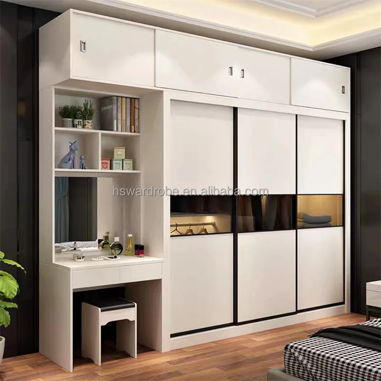 OEM cheap price good quality DIY free combination hotel apartment bedroom furniture MDF wardrobe with drawer and cabinets