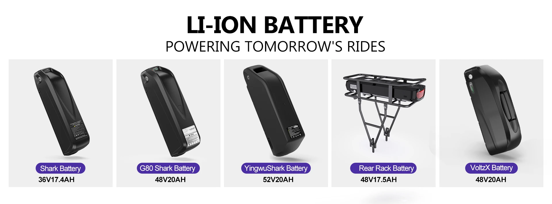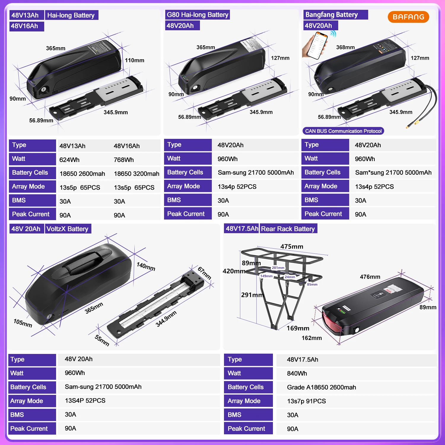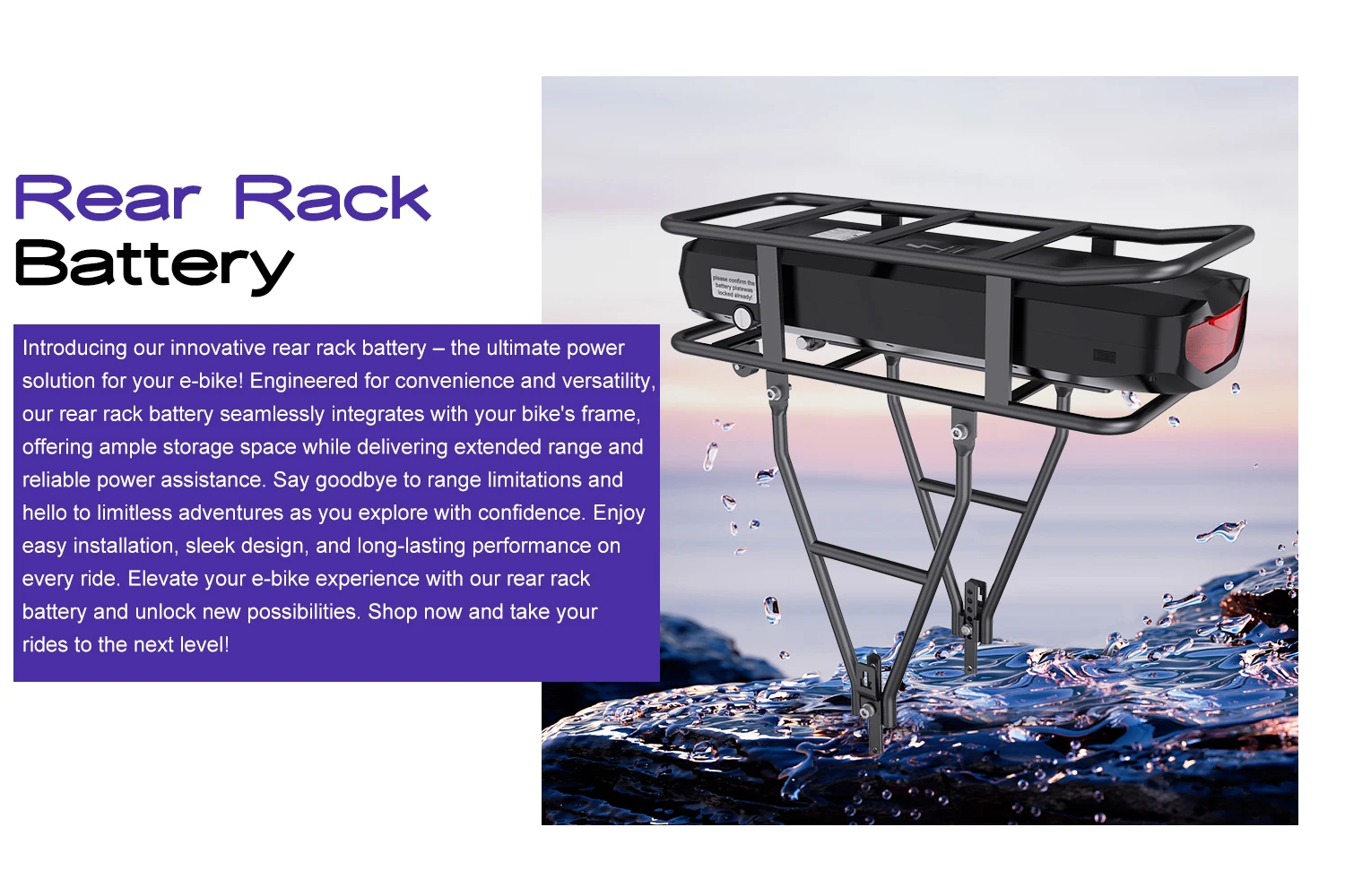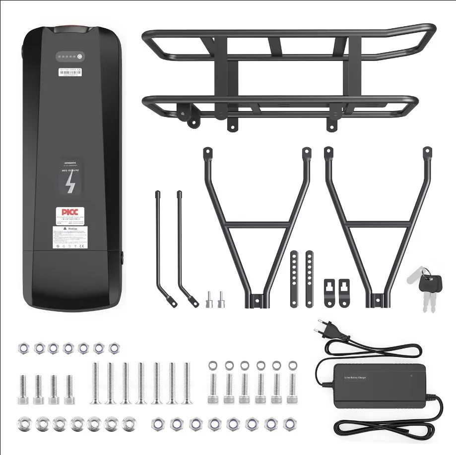 - 48V 17.5Ah Rear Rack Battery: Grade A 18650 2600mah 13S7P 91PCS (4A Charger)