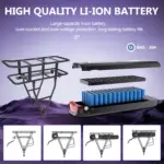 - 36V20.8Ah Rear Rack Battery: Grade A 18650 2600mah 10S8P 80PCS (4A Charger)
