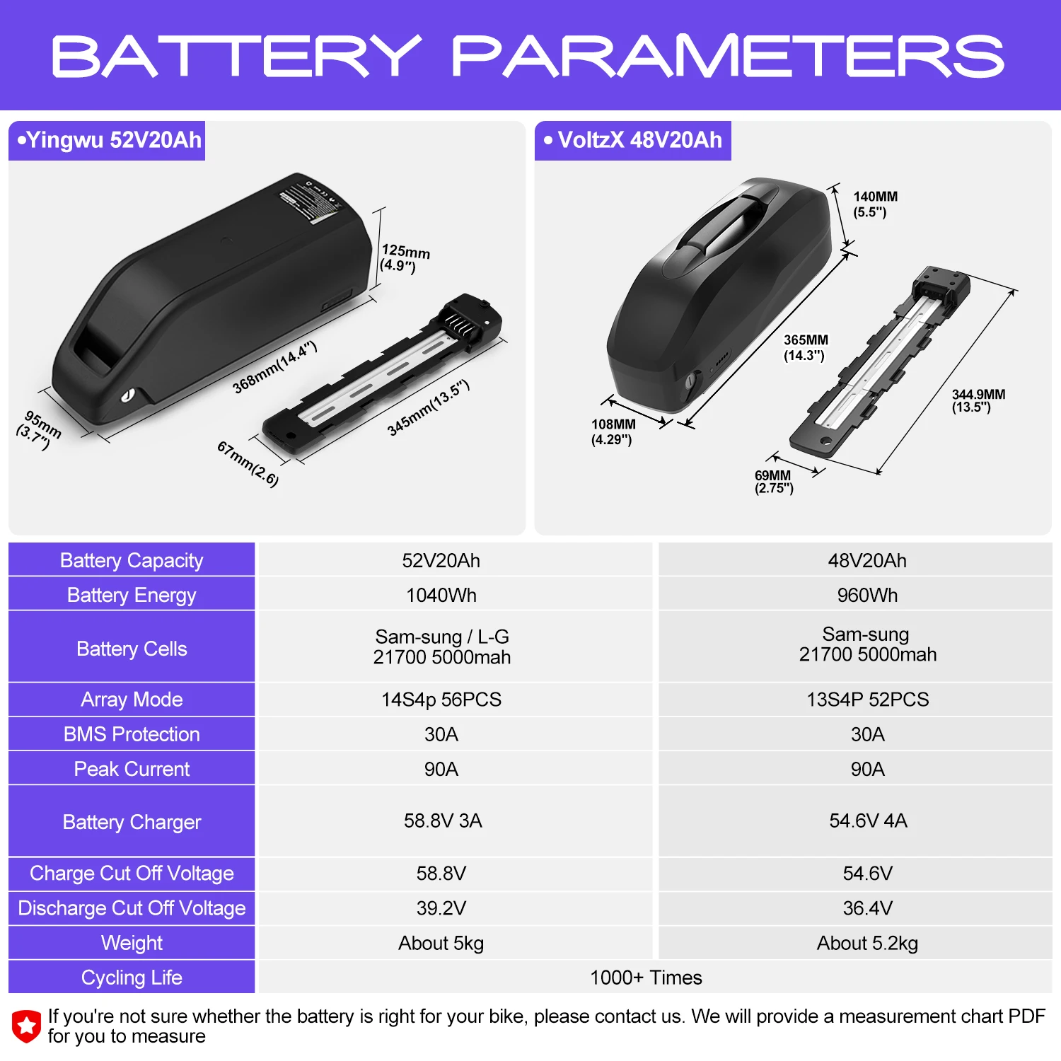 - 52V 20Ah Yingwu Battery: Sa-m*sung 21700 5000mah 14S4P 56PCS (3A Charger)