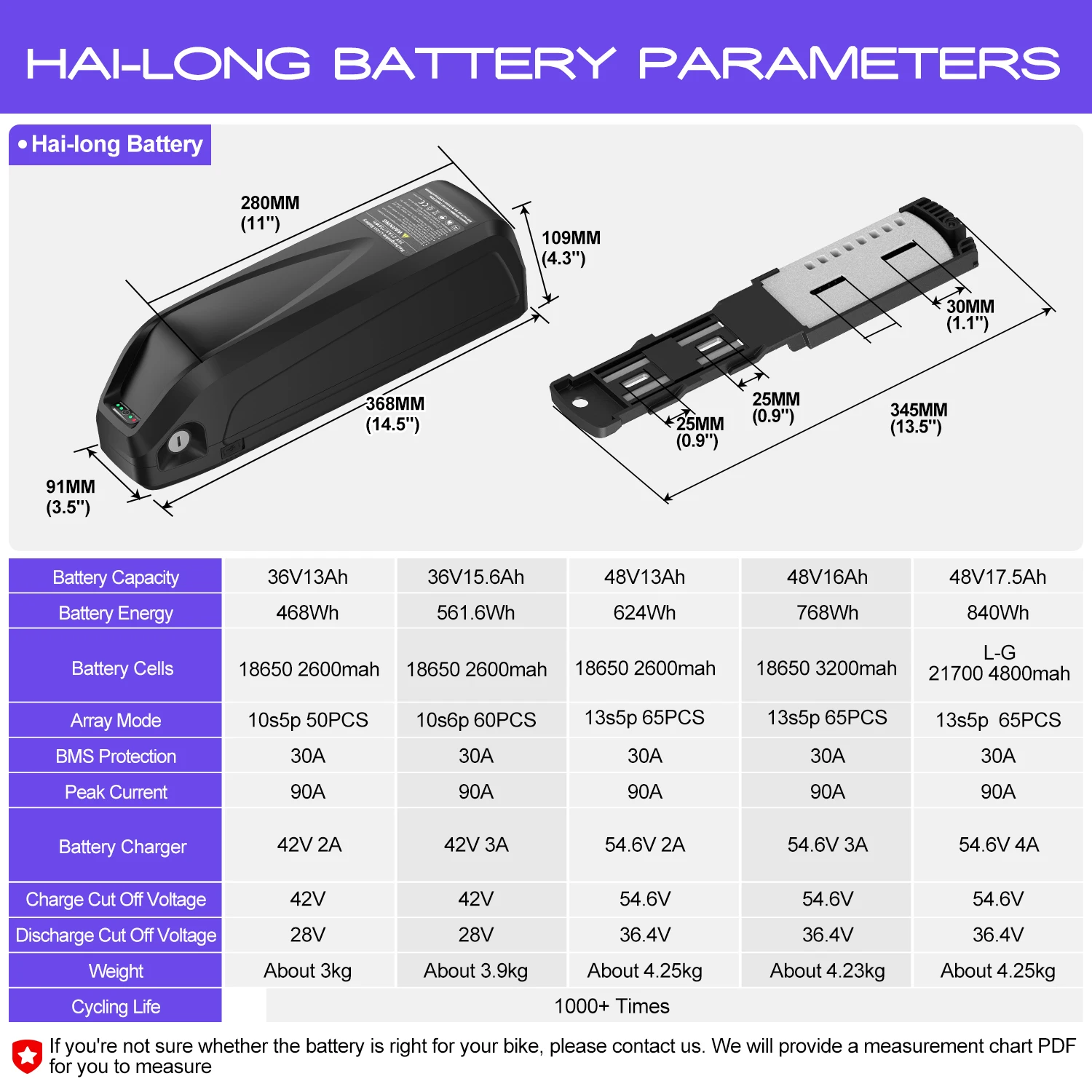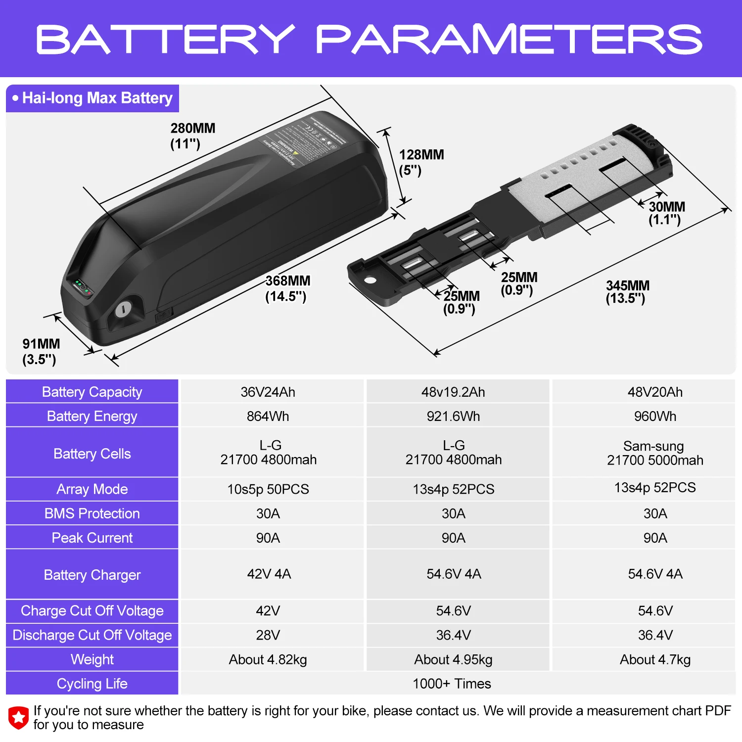 - 48V 20Ah Hailong MAX Battery: Sa-m*sung 21700 5000mah 13S4P 52PCS (4A Charger)