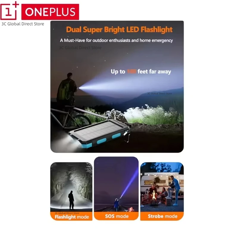 ONEPLUS 200000mAh Solar Power Bank Large Capacity Portable Outdoor Fast Charging External Battery For IPhone Xiaomi Huawei HOT