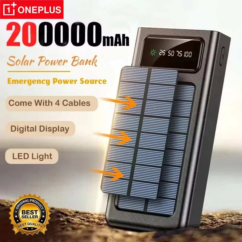 OnePlus 200000mAh Solar Power Bank With Led Super Fast Charging Ultra High Capacity 4 Cables Digital Display External Battery