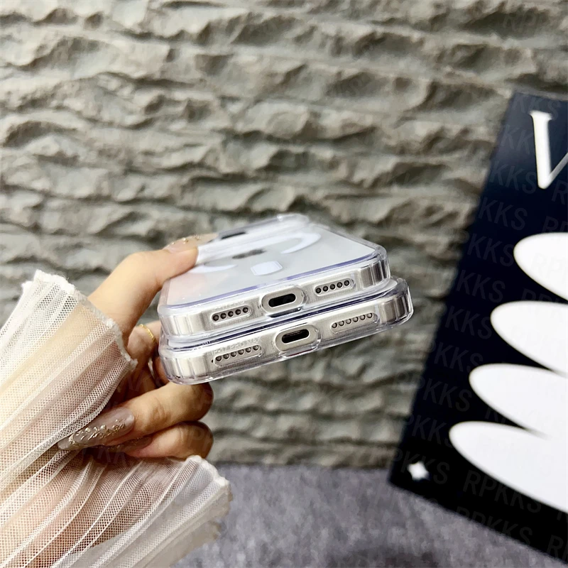 Original For Magsafe Magnetic Wireless Charging Case For iPhone 17 Air 16 15 14 13 12 11 Pro Max 17 Plus Mini Clear Back Cover