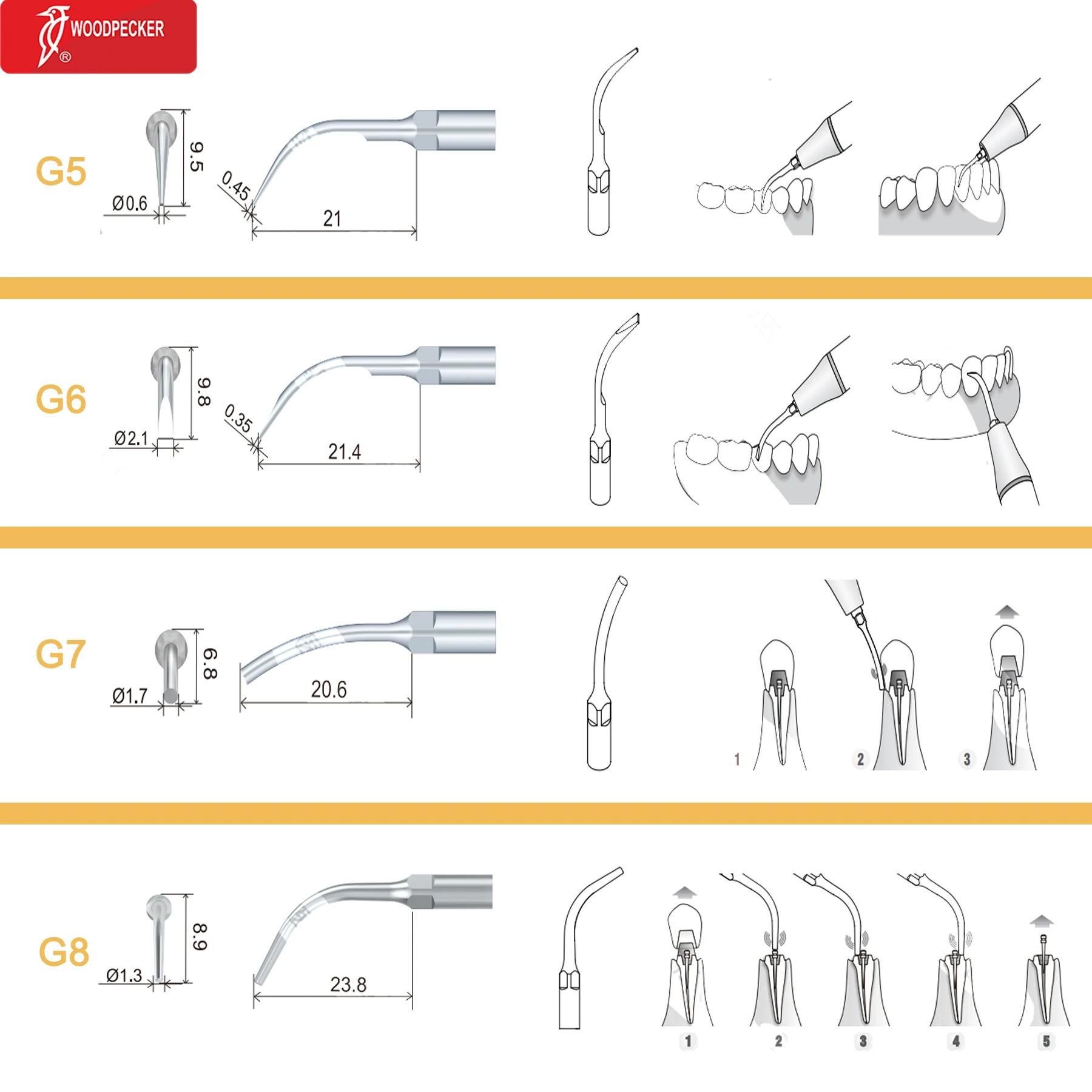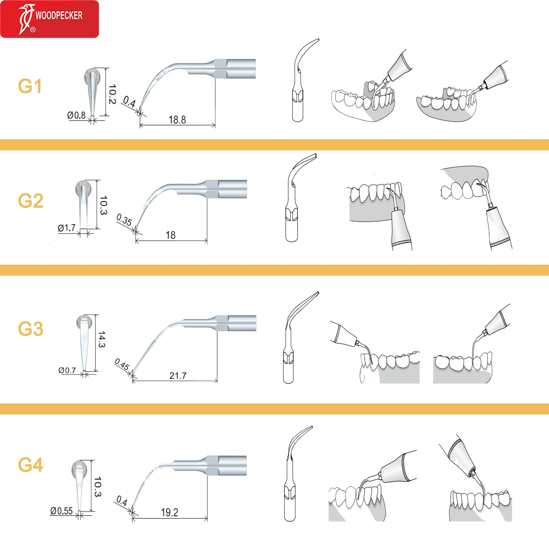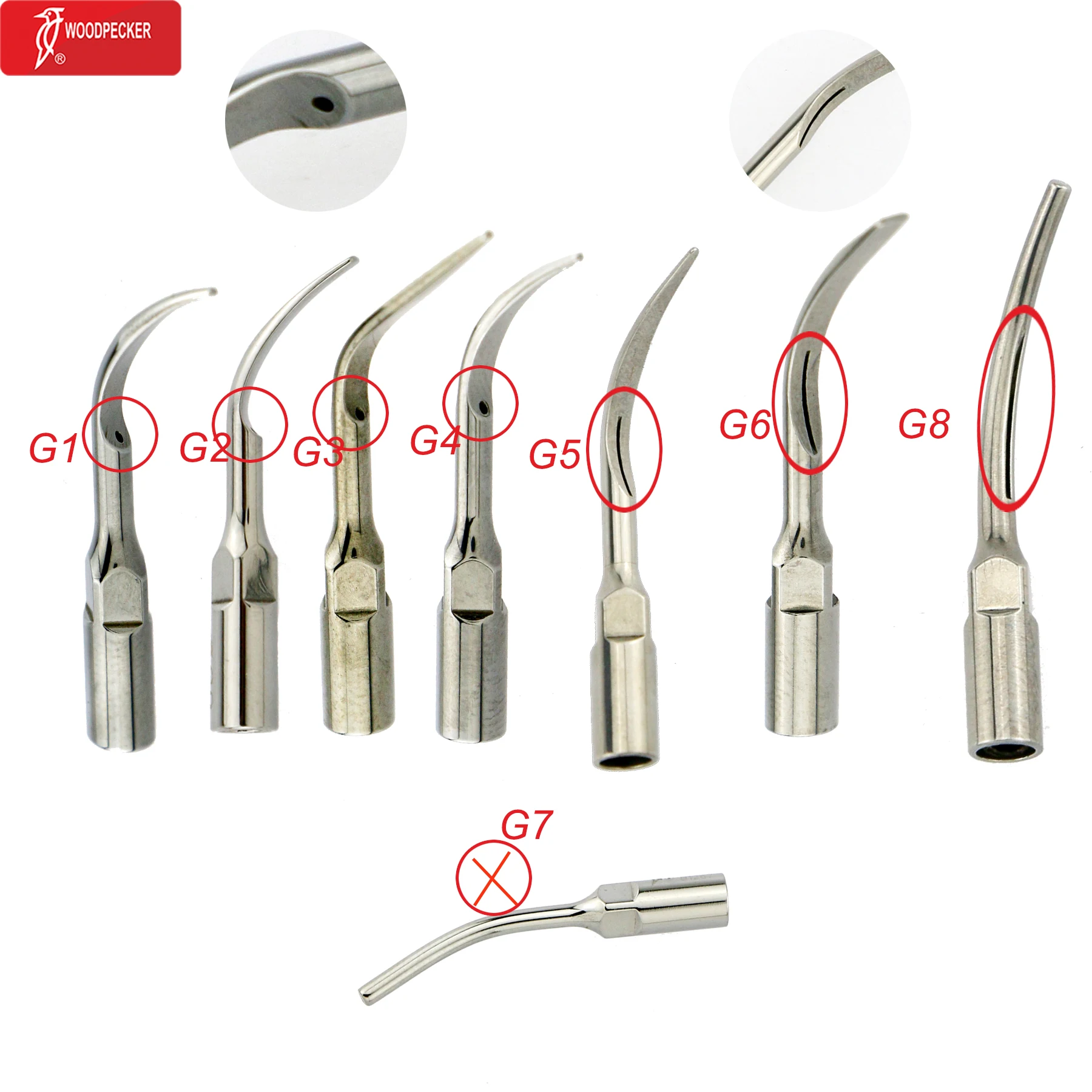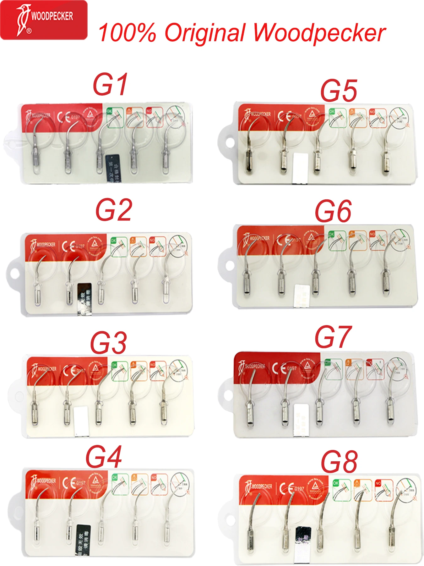 Original Woodpecker Dental Scaler Tips Ultrasonic Scaling Tip G1 G2 G3 G4 G5 G6 G7 G8 Fit For EMS UDS