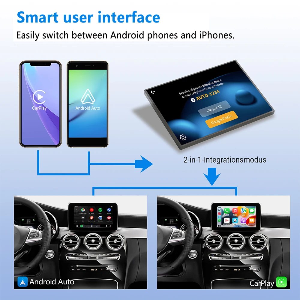 New interface to select Android phone and iPhone. 2-in-1 integration mode, automatically recognize the phone, no need to switch again