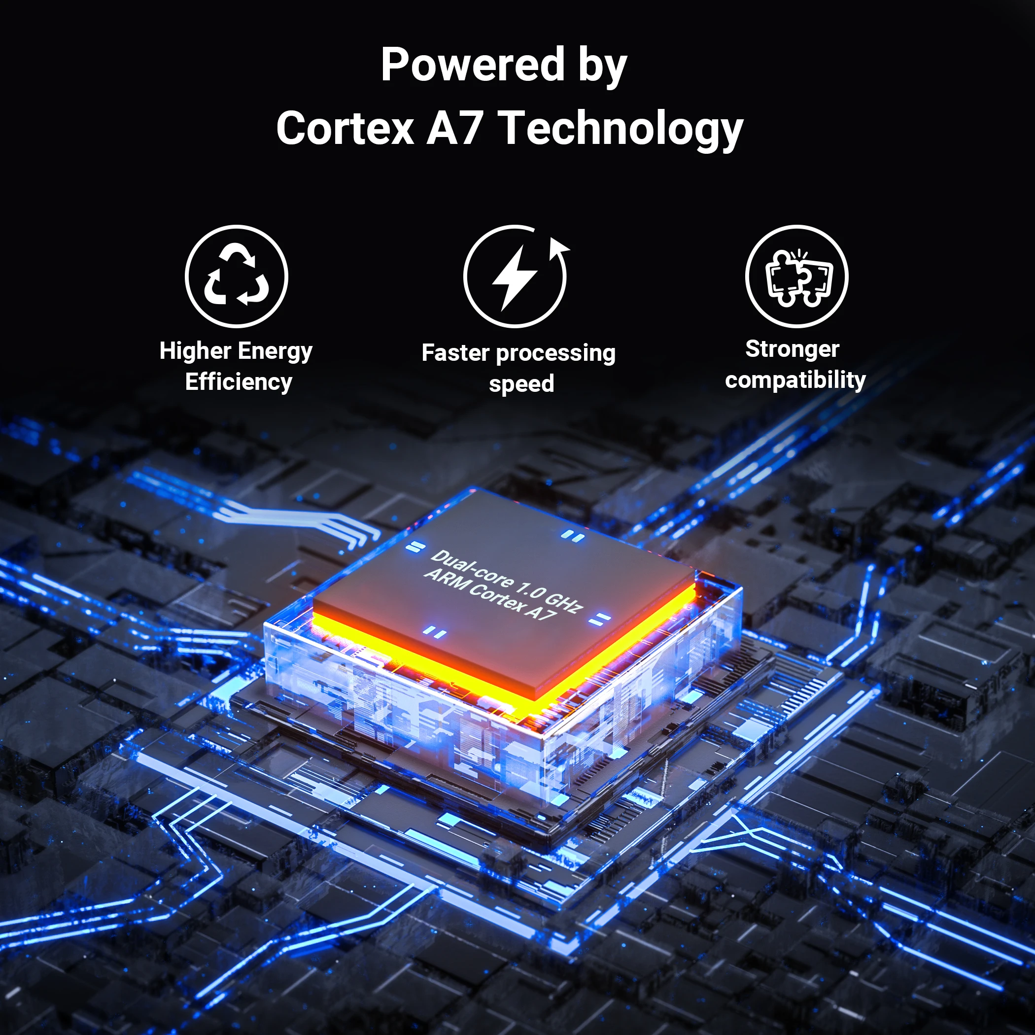 - Processor: Dual-core 1.0 GHz ARM Cortex A7