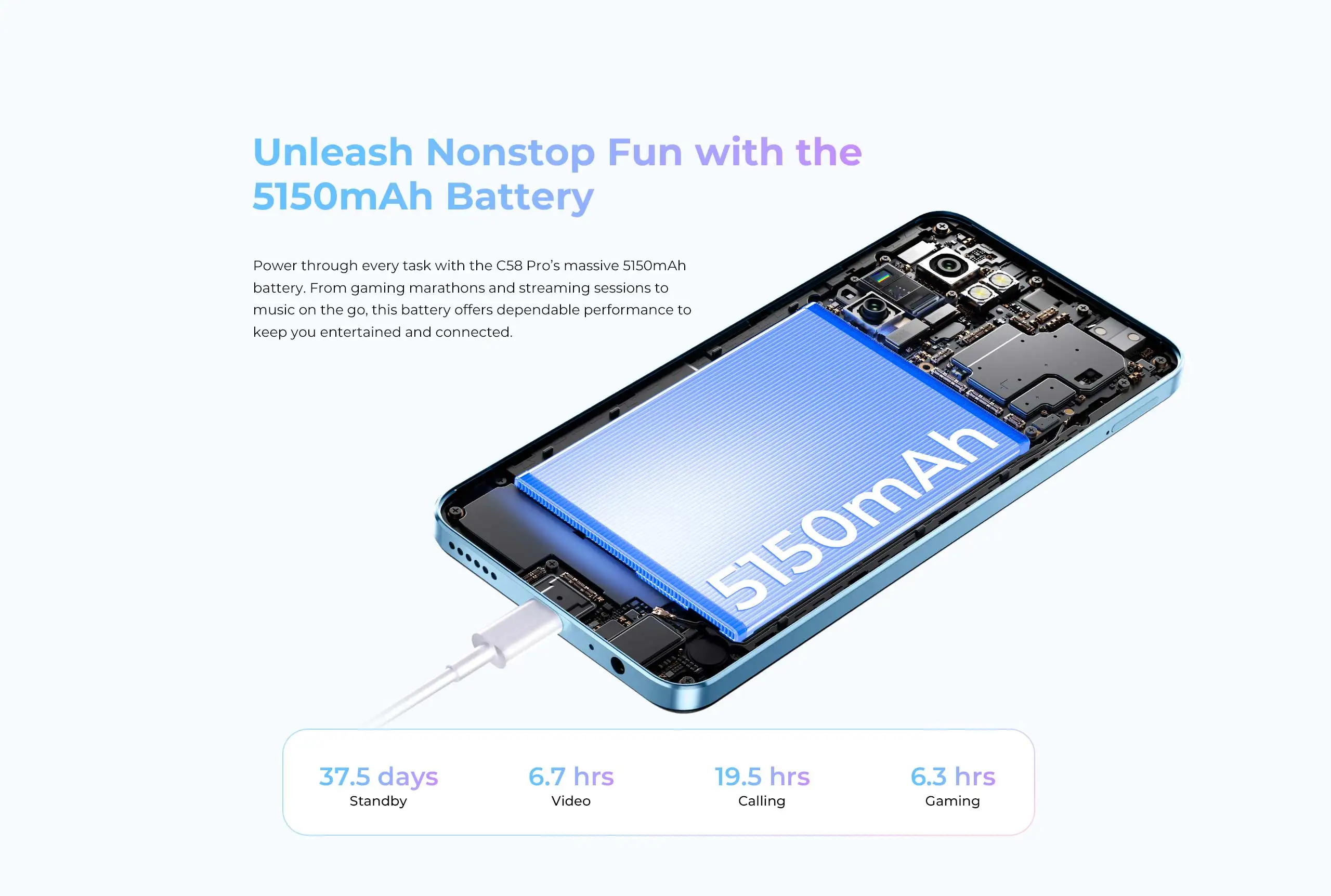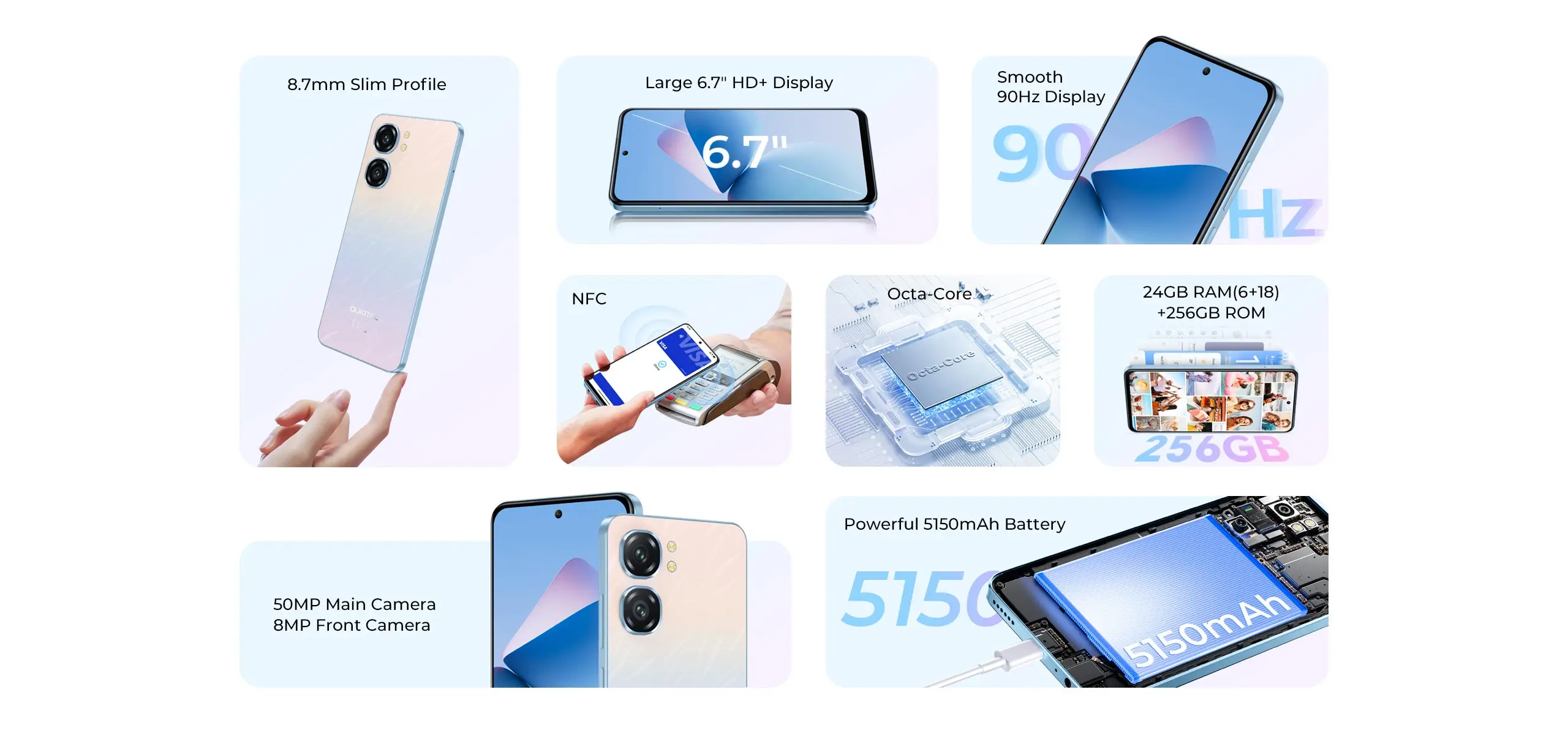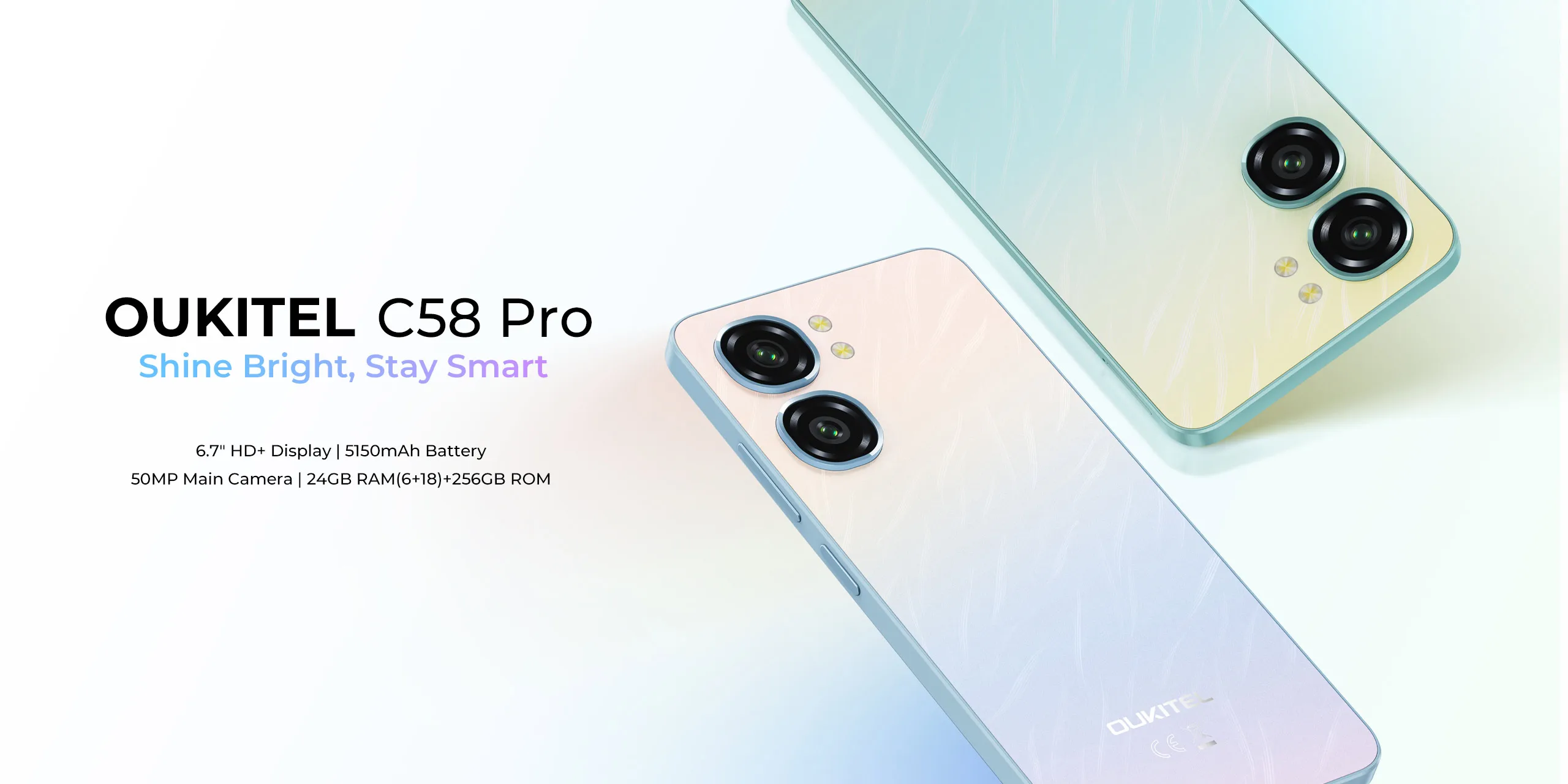 Oukitel C58 PRO smartphone 5150mAh Battery 24(6+18)GB+256GB 50MP Main Camera 6.7″ HD+ Display