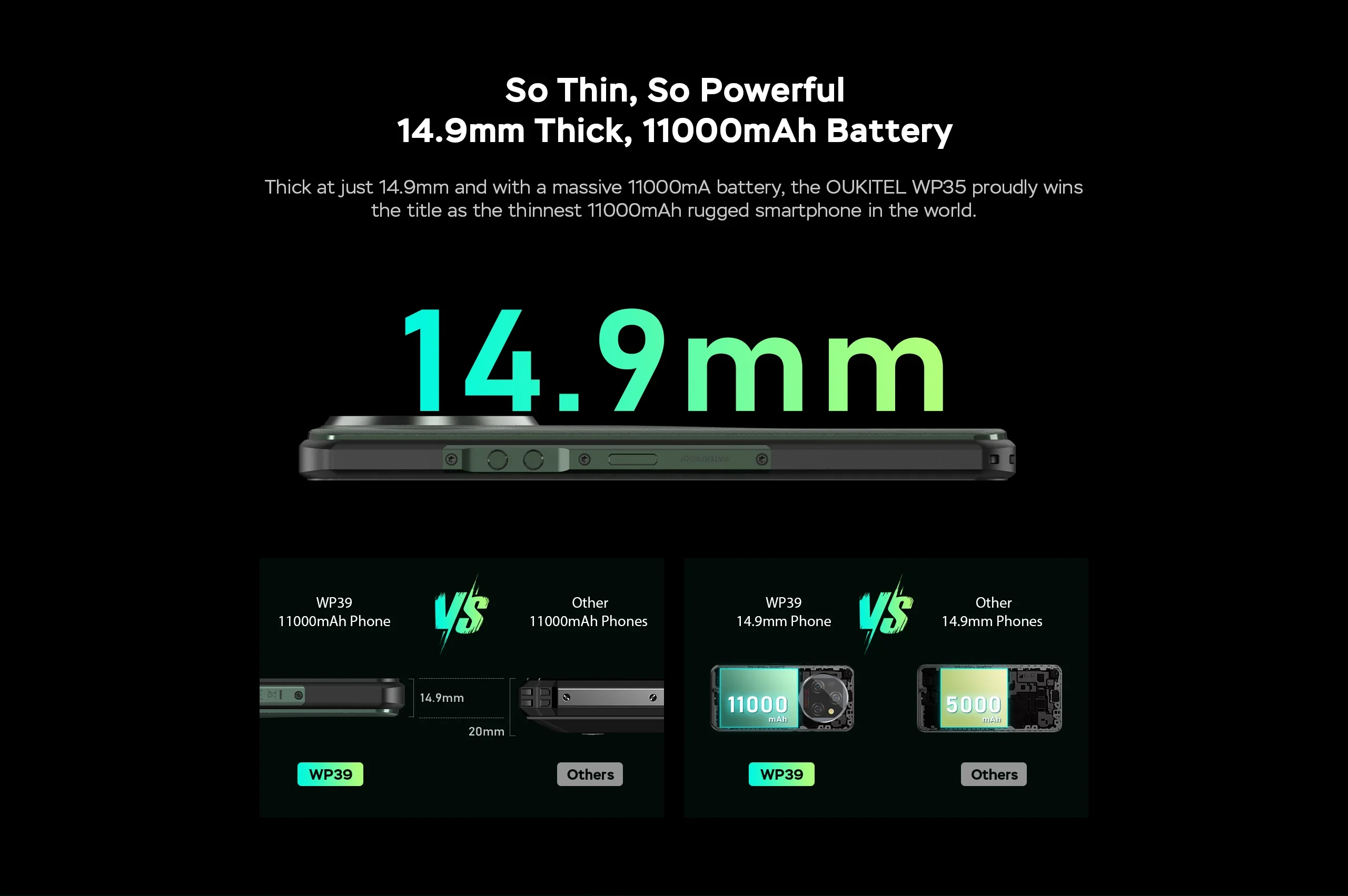 Oukitel wp39 Rugged Smartphone 6.60″FHD+ 5G 24GB(6+18)+256GB 64MP Camera 11000mAh Cell phone Android 14 Global Version