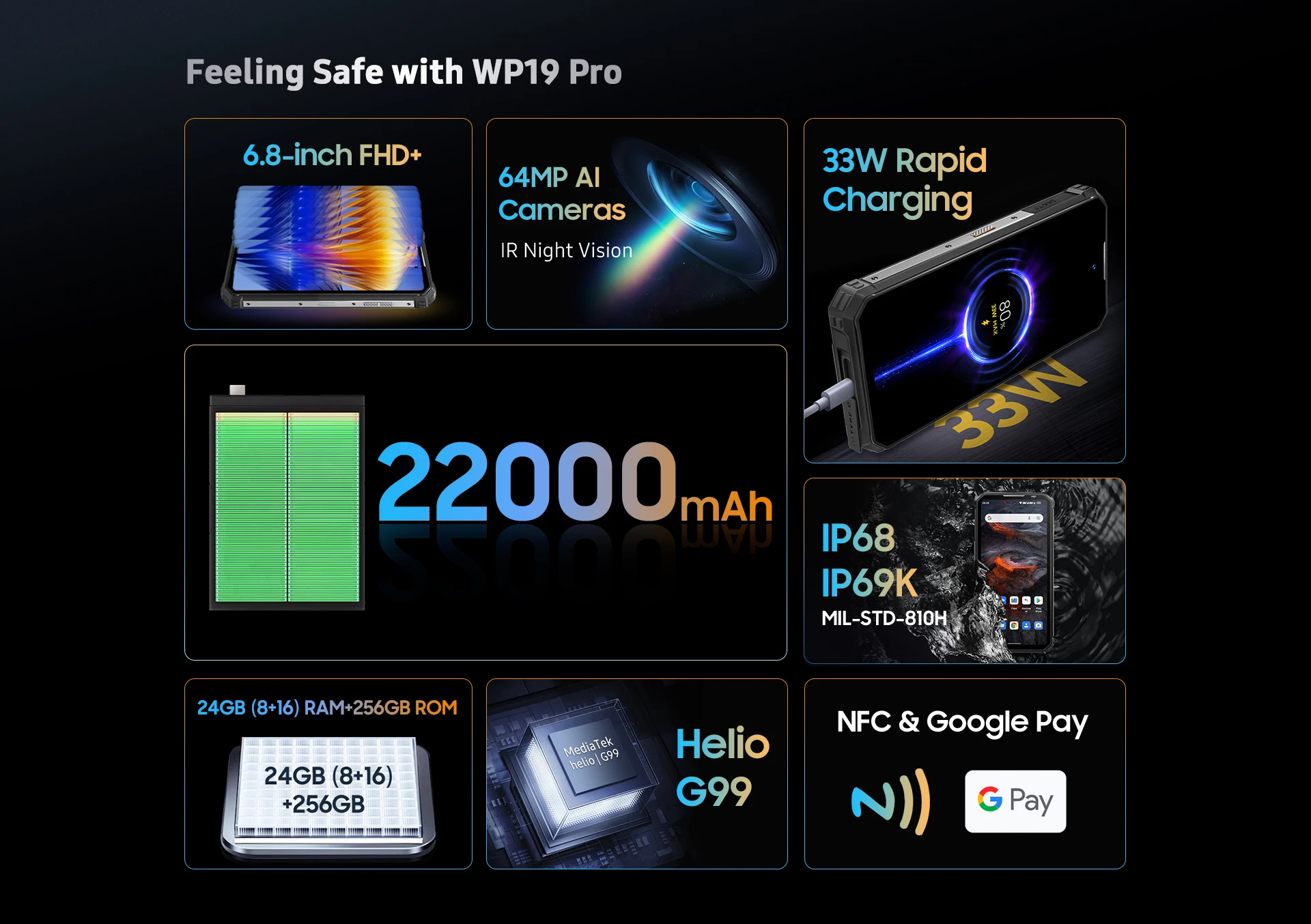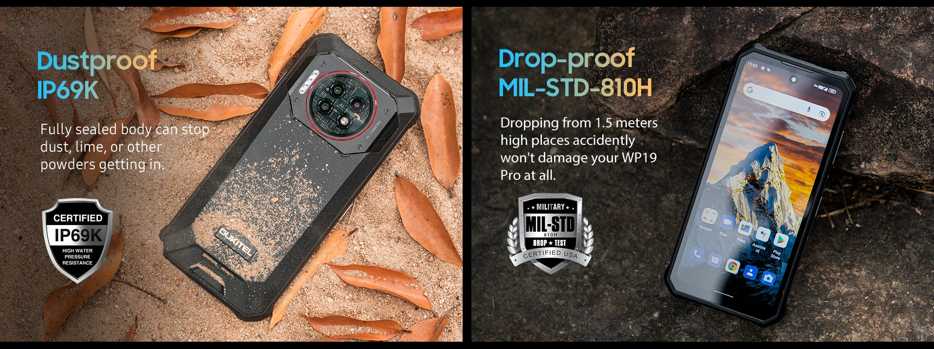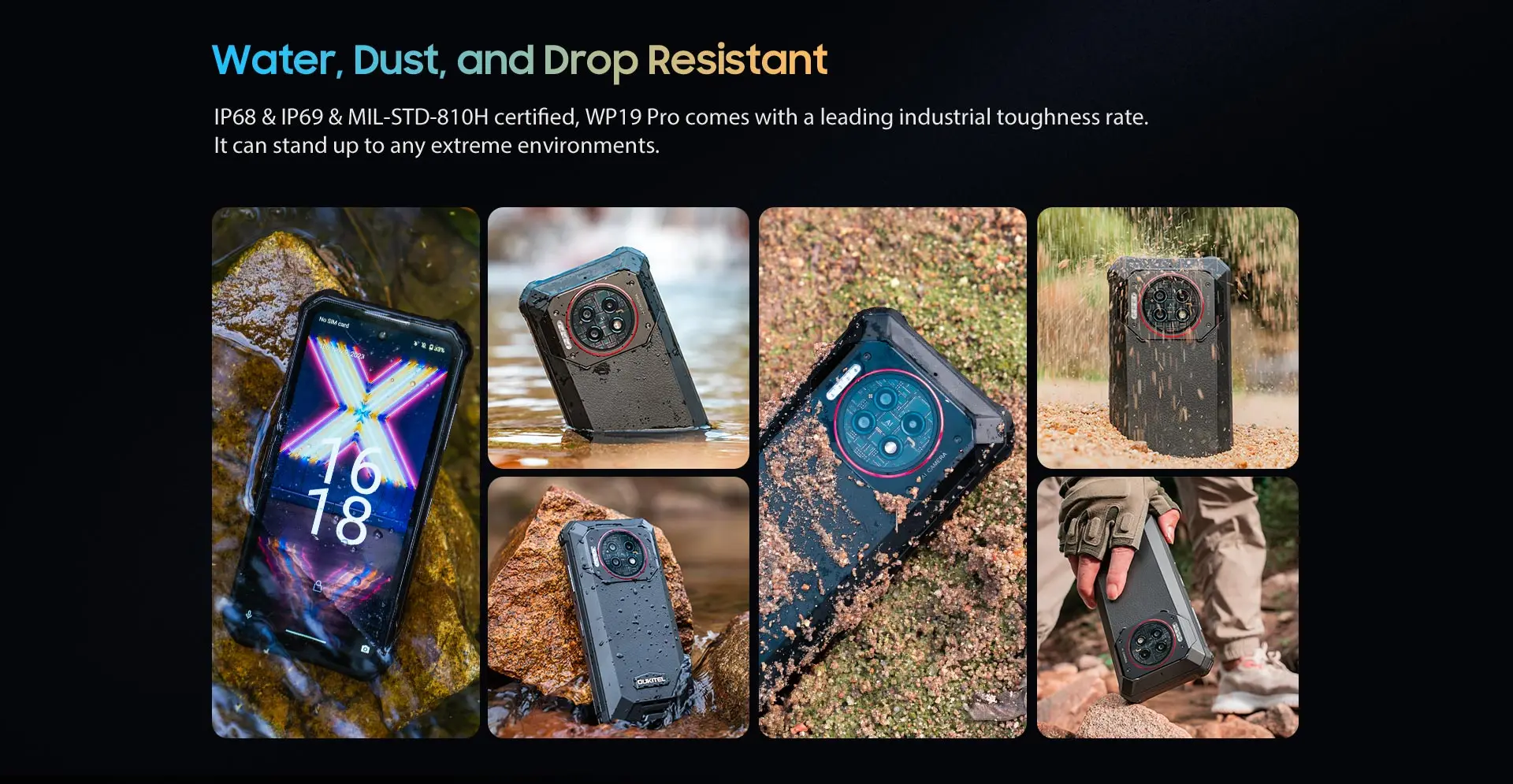 IP68 &IP69 &MIL-STD-810H certified, WP19 Pro comes with a leading industrial toughness rate. It can stand up to any extreme environments.