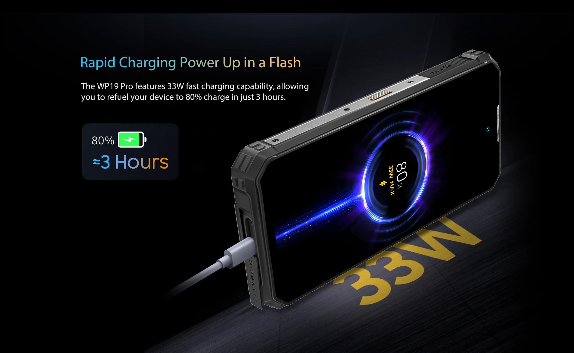 The WP19 Pro features 33W fast charging capability, allowing you to refuel your device to 80% charge in just 3 hours.