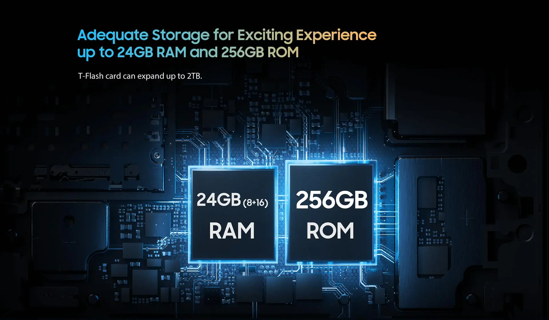 Adequate Storage for Exciting Experience up to 24GB RAM and 256GB ROM