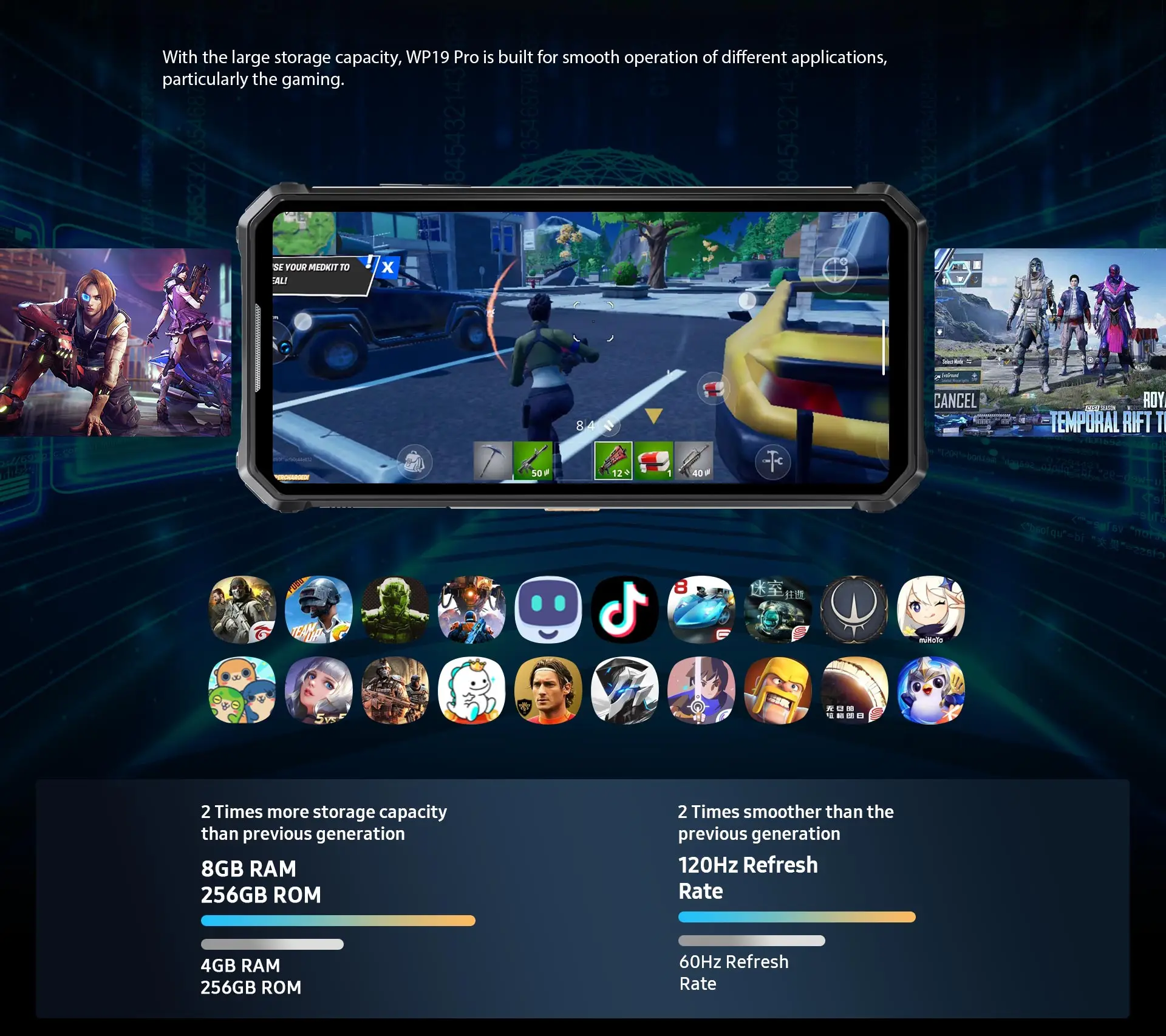With the large storage capacity, WP19 Pro is built for smooth operation of different applications, particularly the gaming.