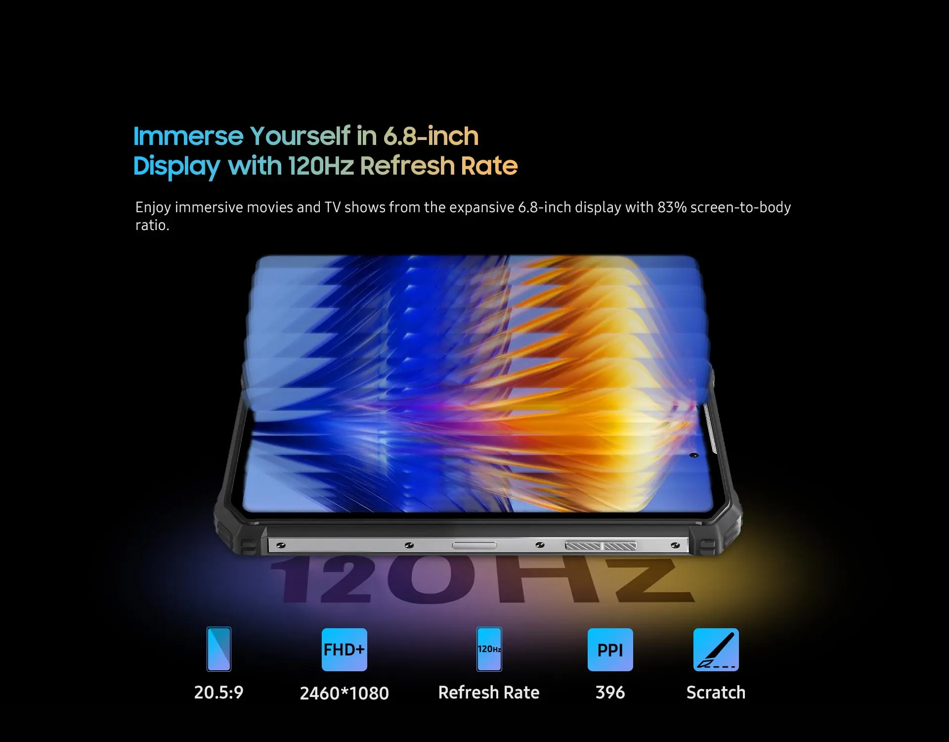 Screen:6.8″FHD+IPS ,2460*1080 ,120Hz Refresh Rate