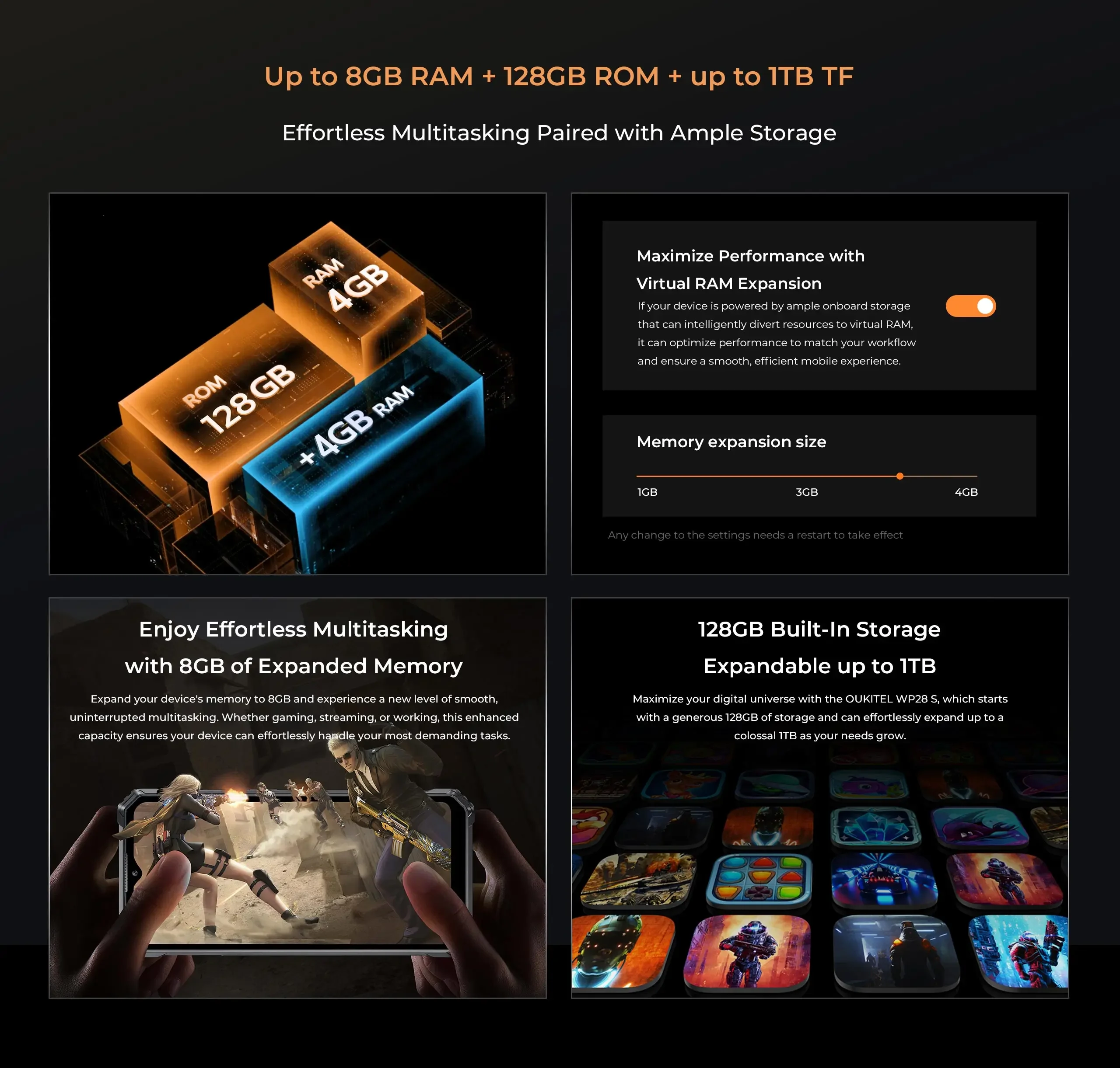 RAM+ROM:16GB(4+12) RAM+128GB ROM
