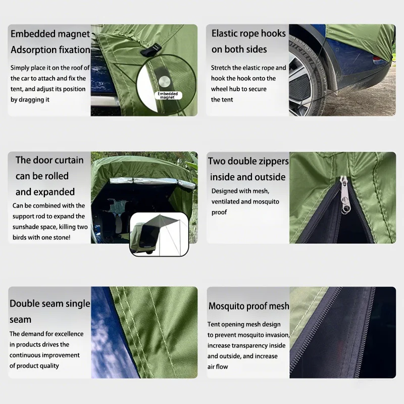 Outdoor SUV Car Rear Tent Camping Picnic Car Rear Tent with Canopy Car Rear Extension Tent Sunshine-Proof Rain-Proof Car Rear Tent