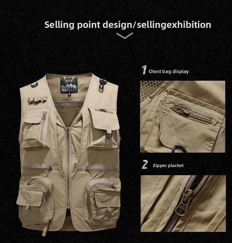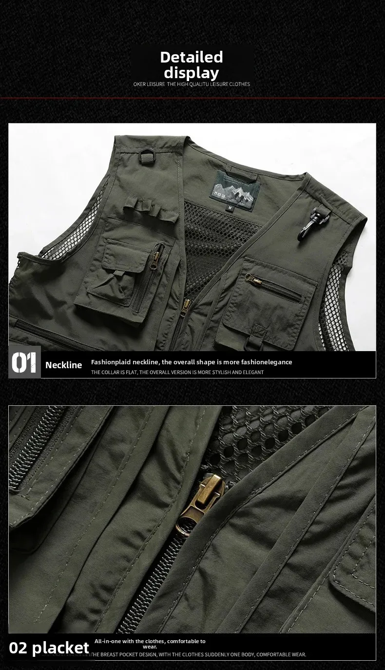 Outdoor Fishing Photography Casual Workwear Multi-Pocket Vest Spring Summer New Arrival Lightweight Men’s Loose Fit Jacket