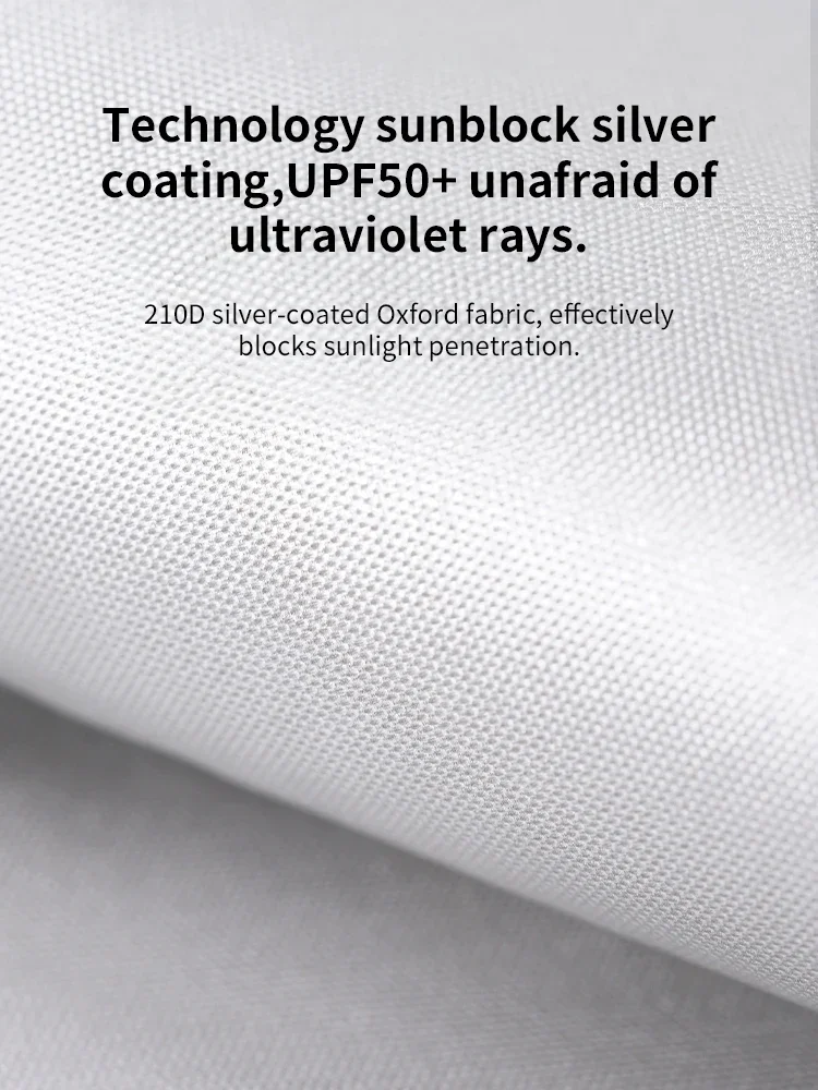 2.Silver-coated, sunblock: The tent’s inner layer is made of silver-coated fabric, reducing the impact of ultraviolet rays.