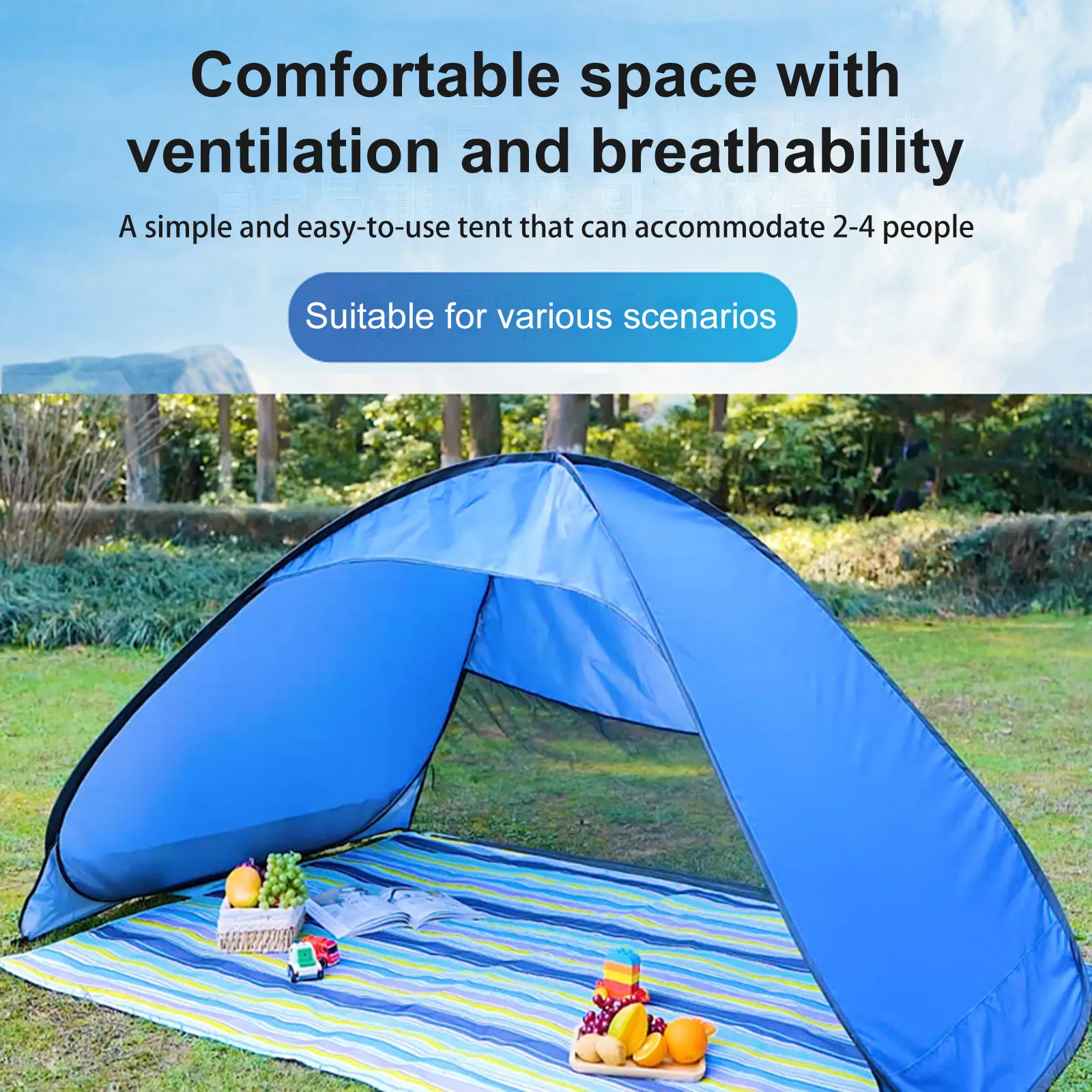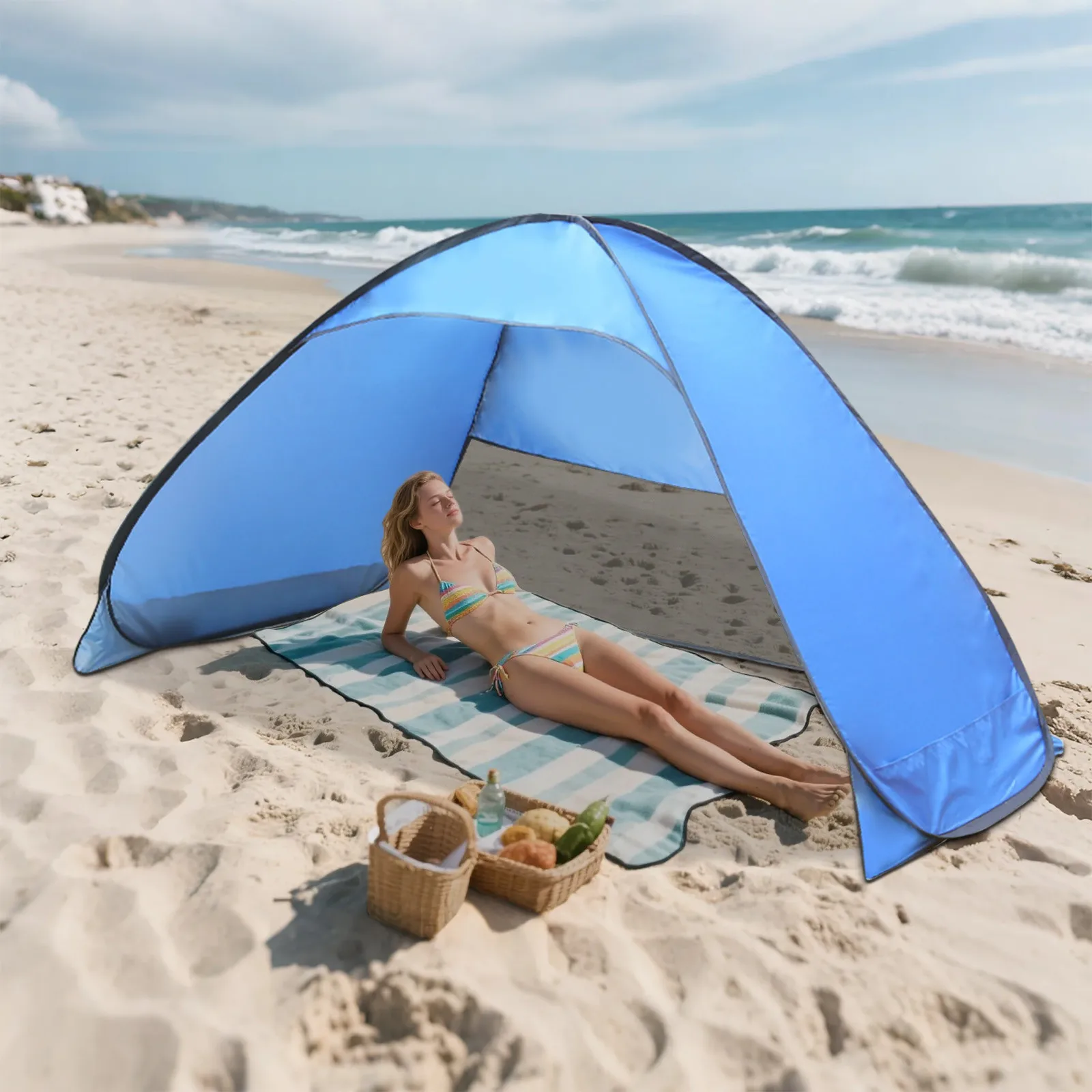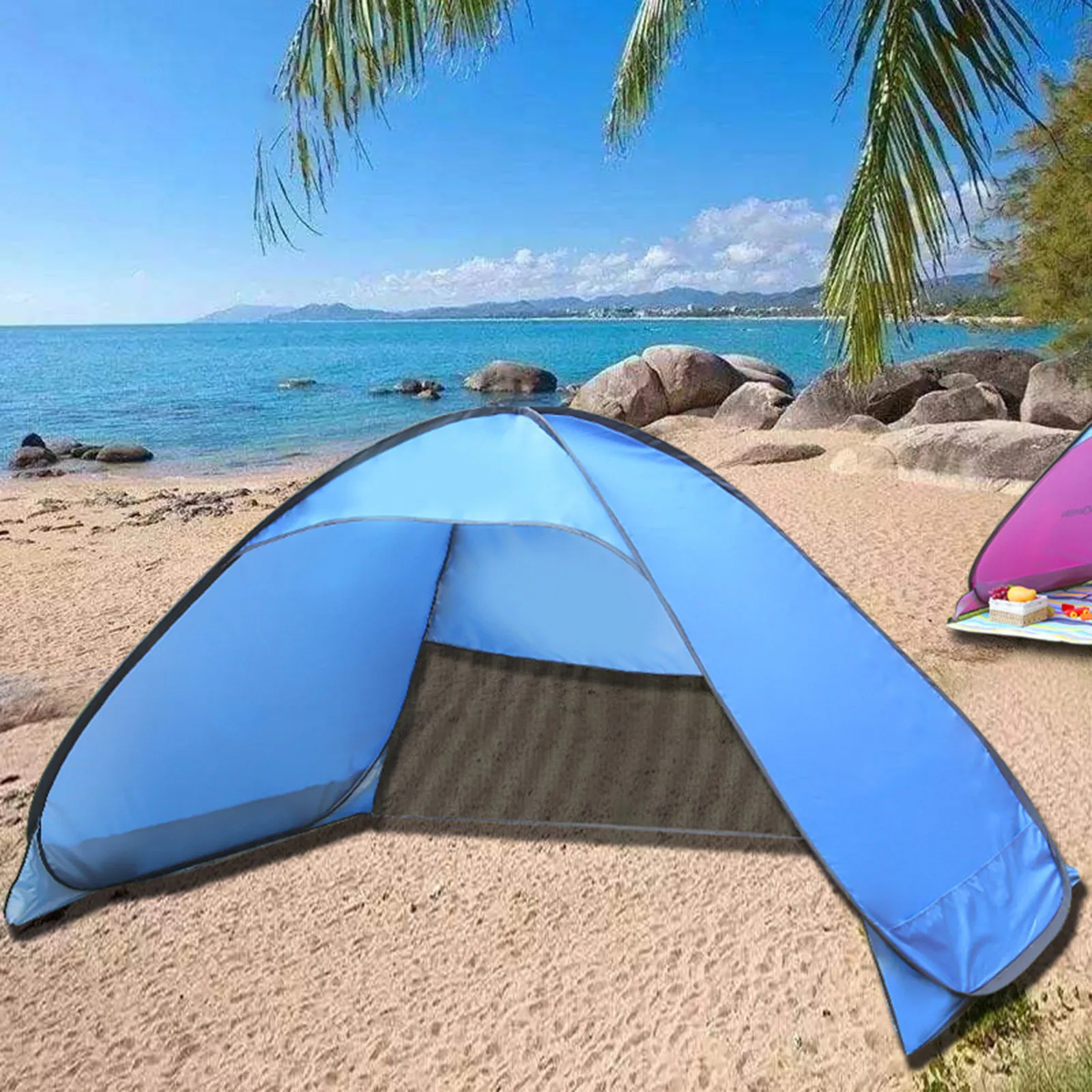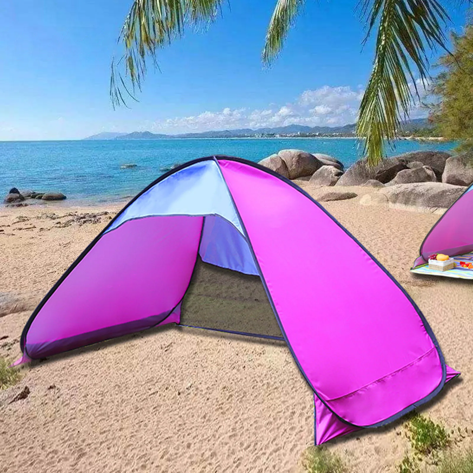 • 【No Assembly Required】Our beach tent adopts automatic pop-up design and can be set up in seconds! Then, use the included nails to quickly fix the pop-up beach tent to the ground.