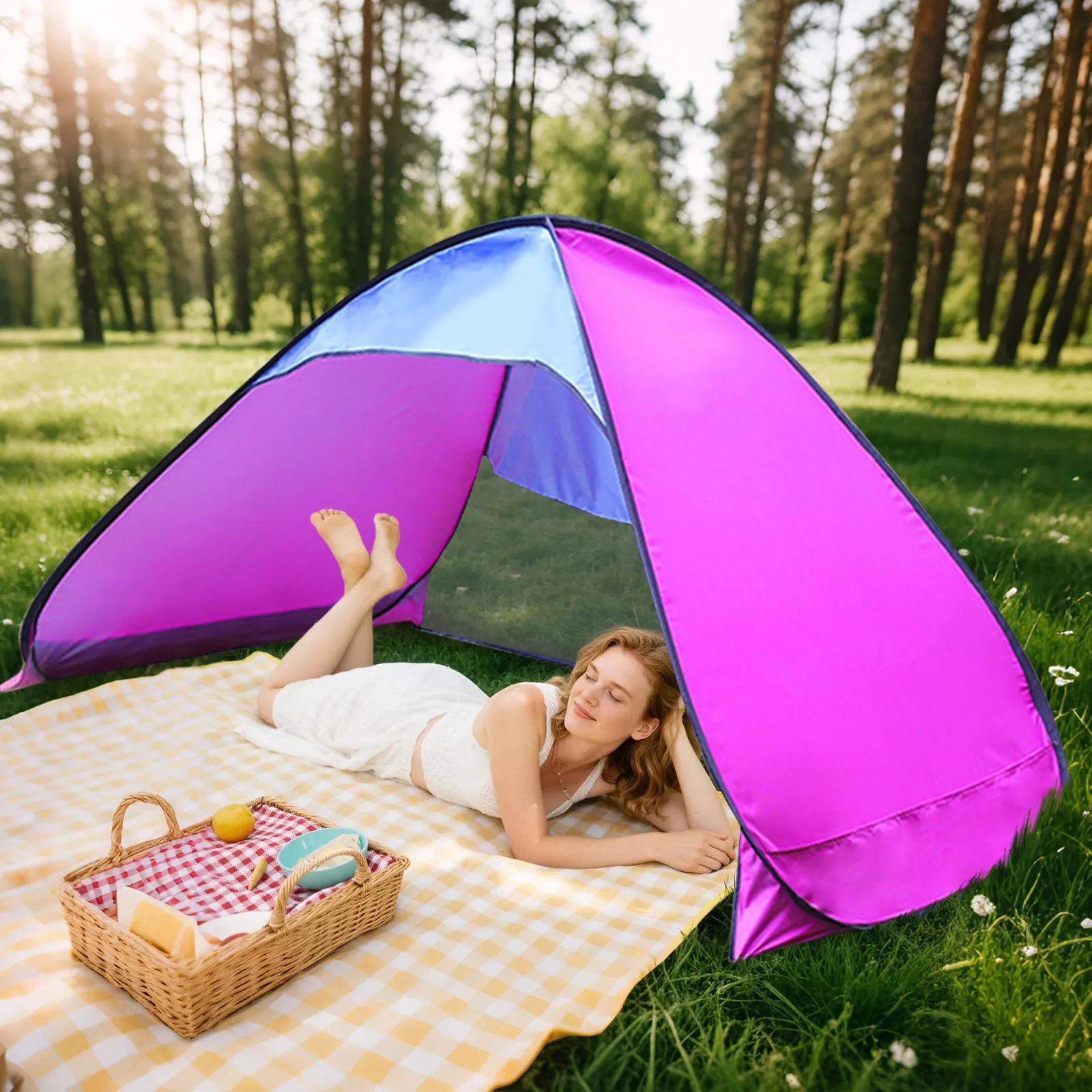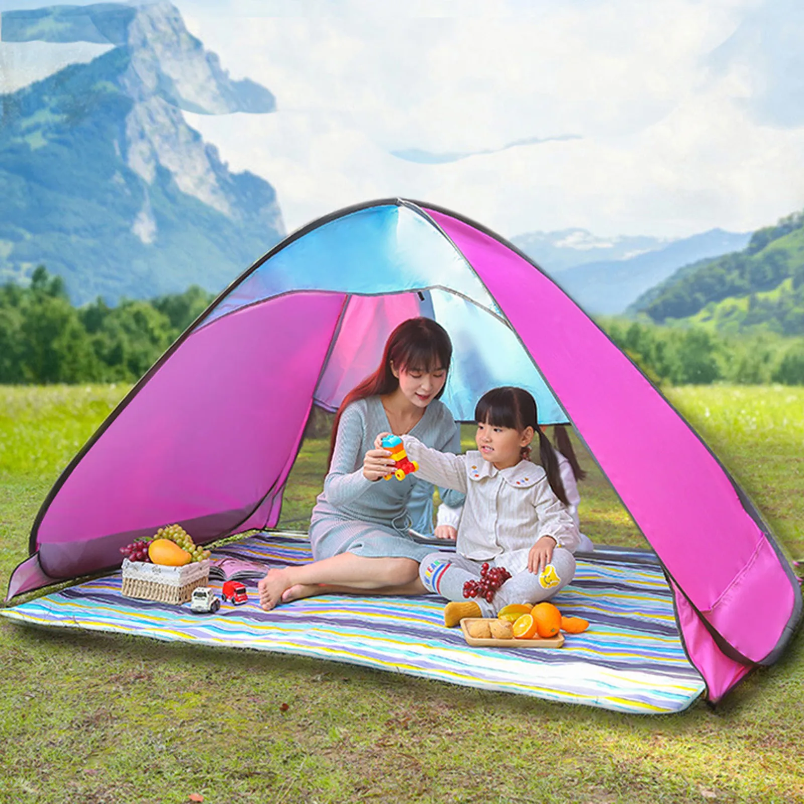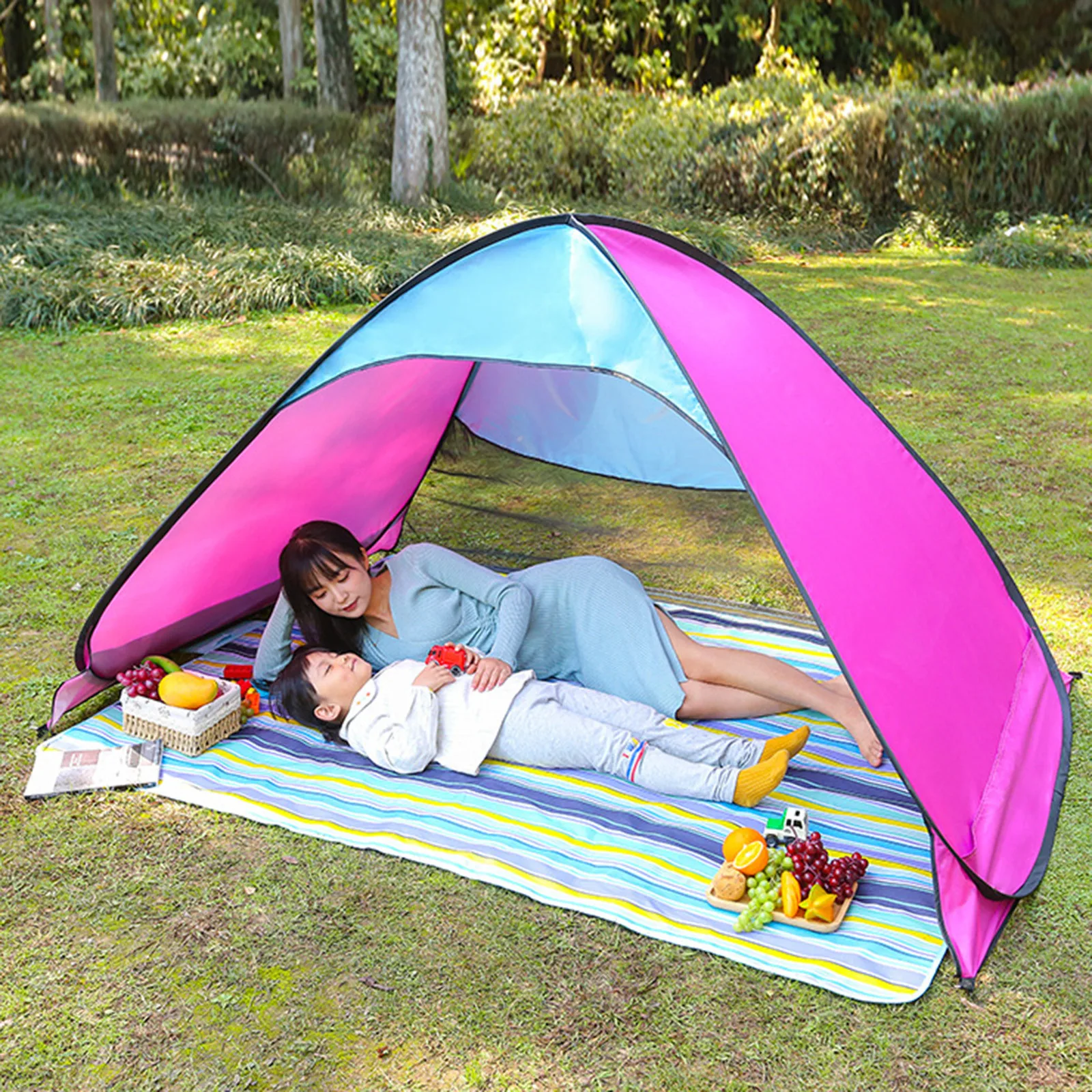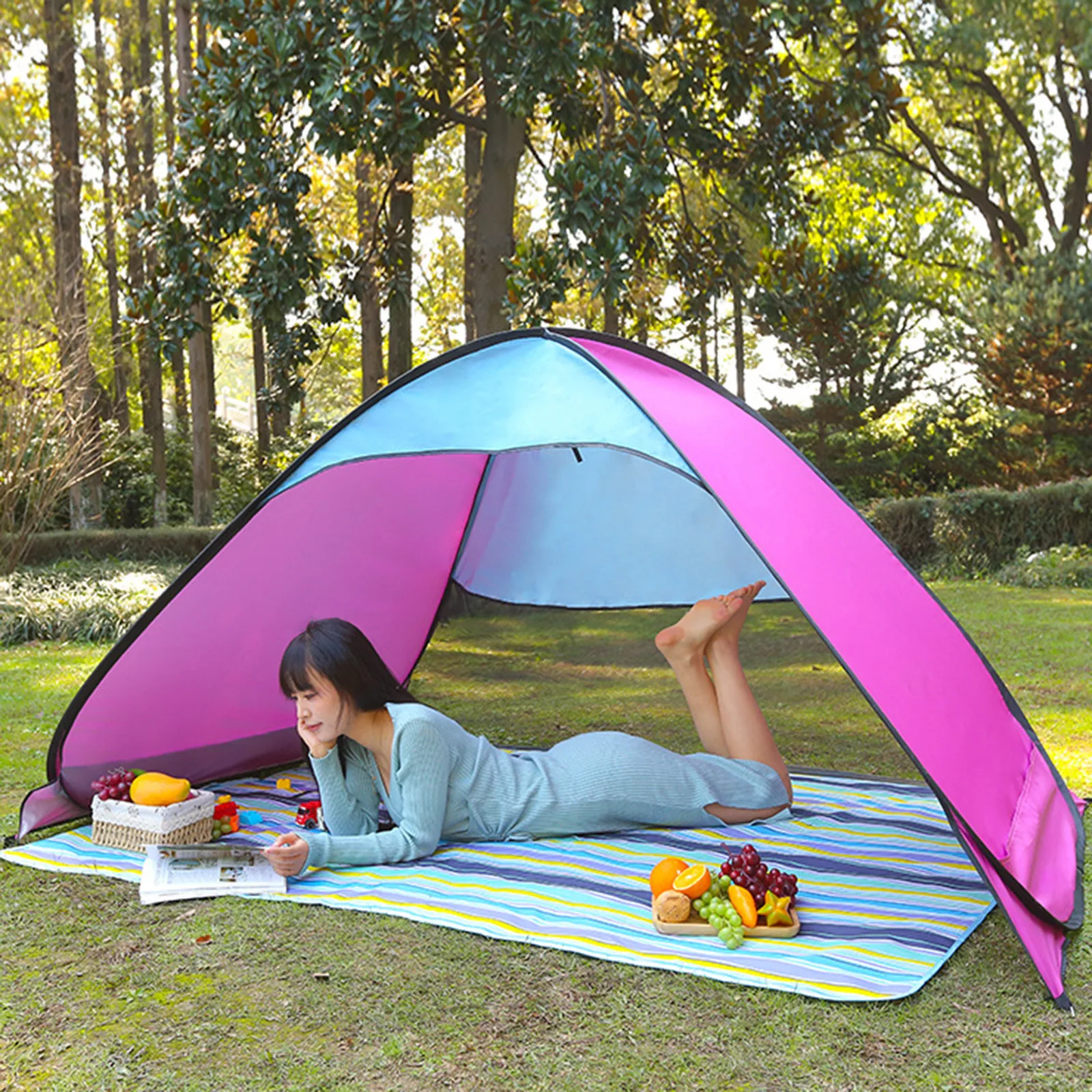 Outdoor Park Picnic Sunshade Waterproof Beach Tent Portable Folding Beach Tent Solid Color Travel Camping Supplies Accessories