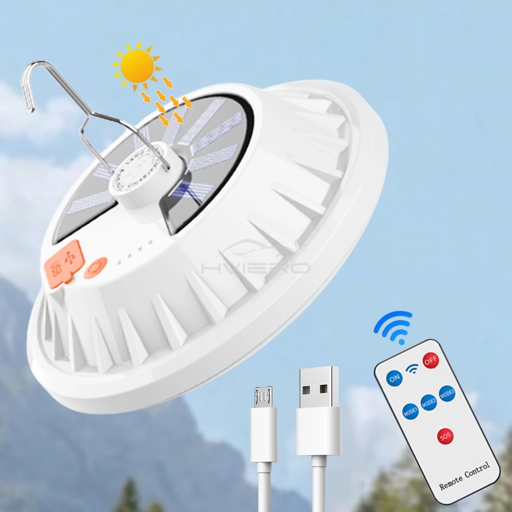 Outdoor Solar LEDs Remote Control Camping Lamp Portable Hang Lantern Rechargeable Powered Market Emergency Power Night Light