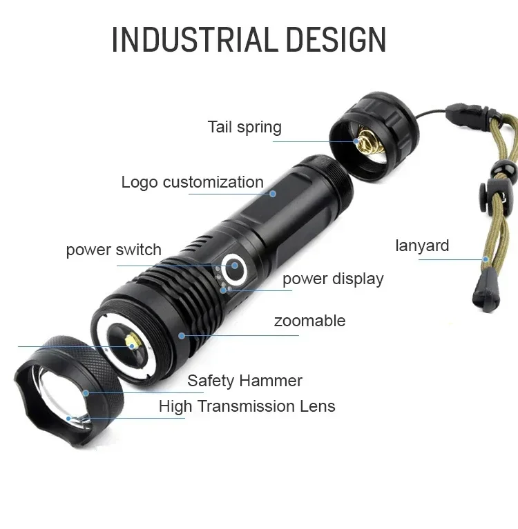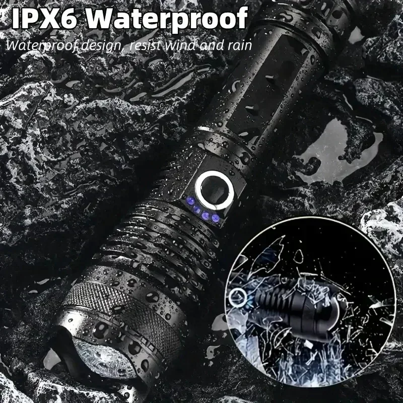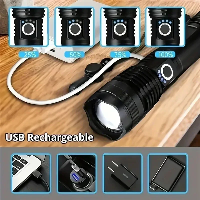P50 Aluminum Alloy Glare Flashlight 26650/18650 USB Charging Long-Range Outdoor Waterproof Telescopic Zoom Night Fishing Light