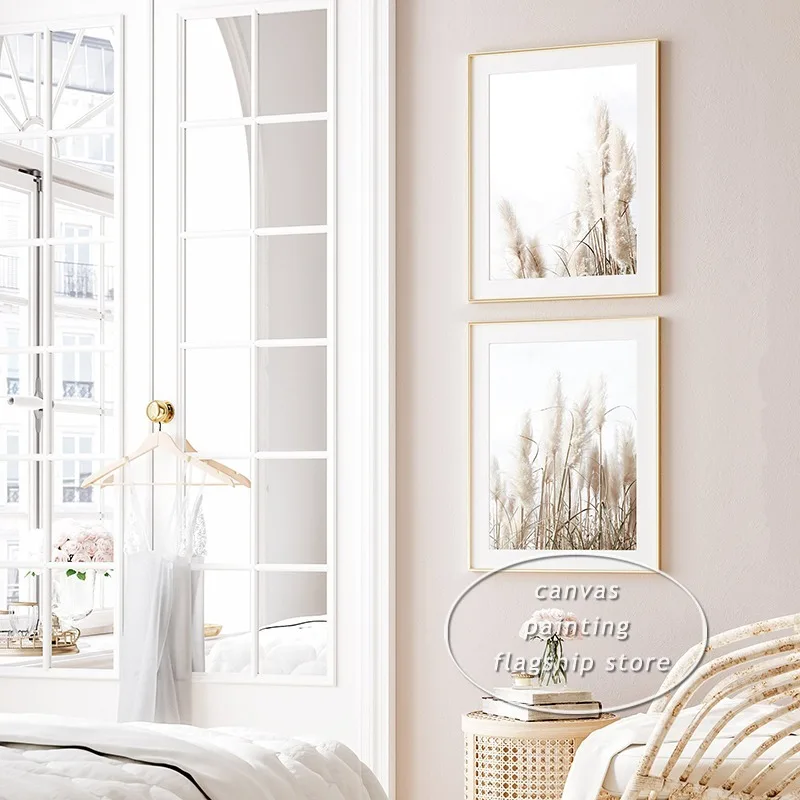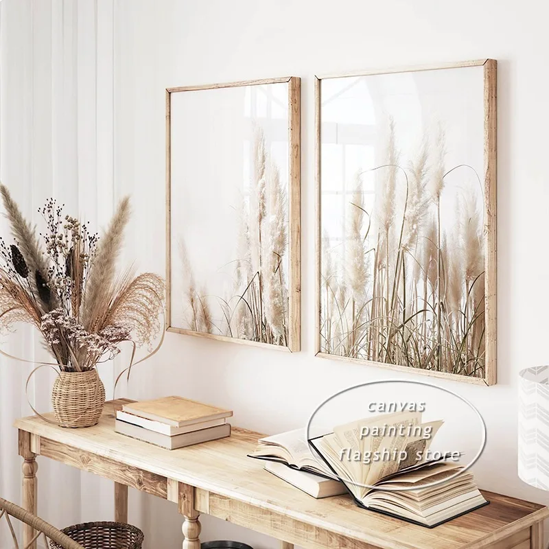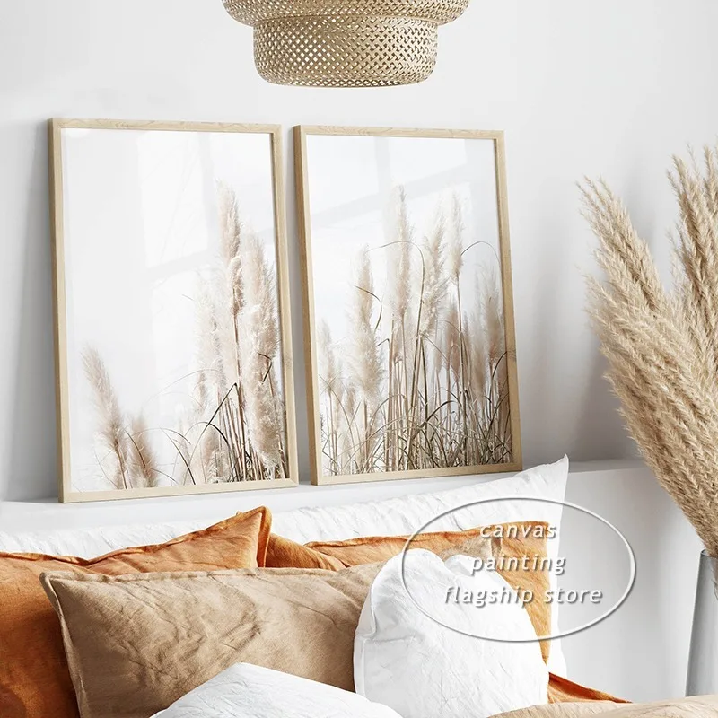 Pampas Grass Beach Costal Style Dried Grass Plant Photography Print Canvas Paintings Wall Art Poster Living Room Decor Picture