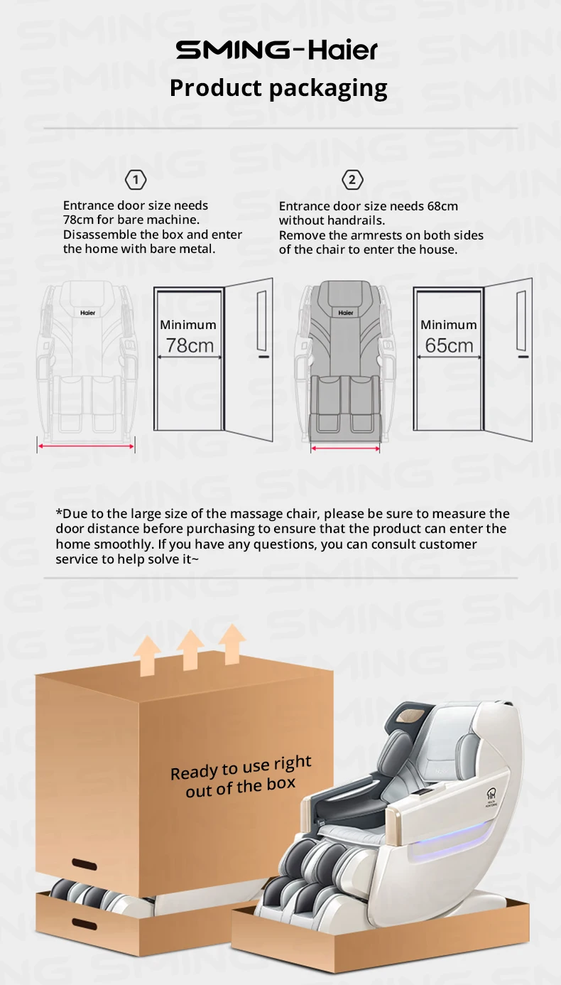 *Due to the large size of the massage chair, please be sure to measure the door distance before purchasing to ensure that the product can enter the home smoothly. If you have any questions, you can consult customer service to help solve it~