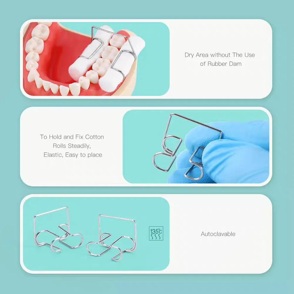 6.Dry area without the use of rubber damTo hold and fix cotton rolls steadily, elastic, easy to place