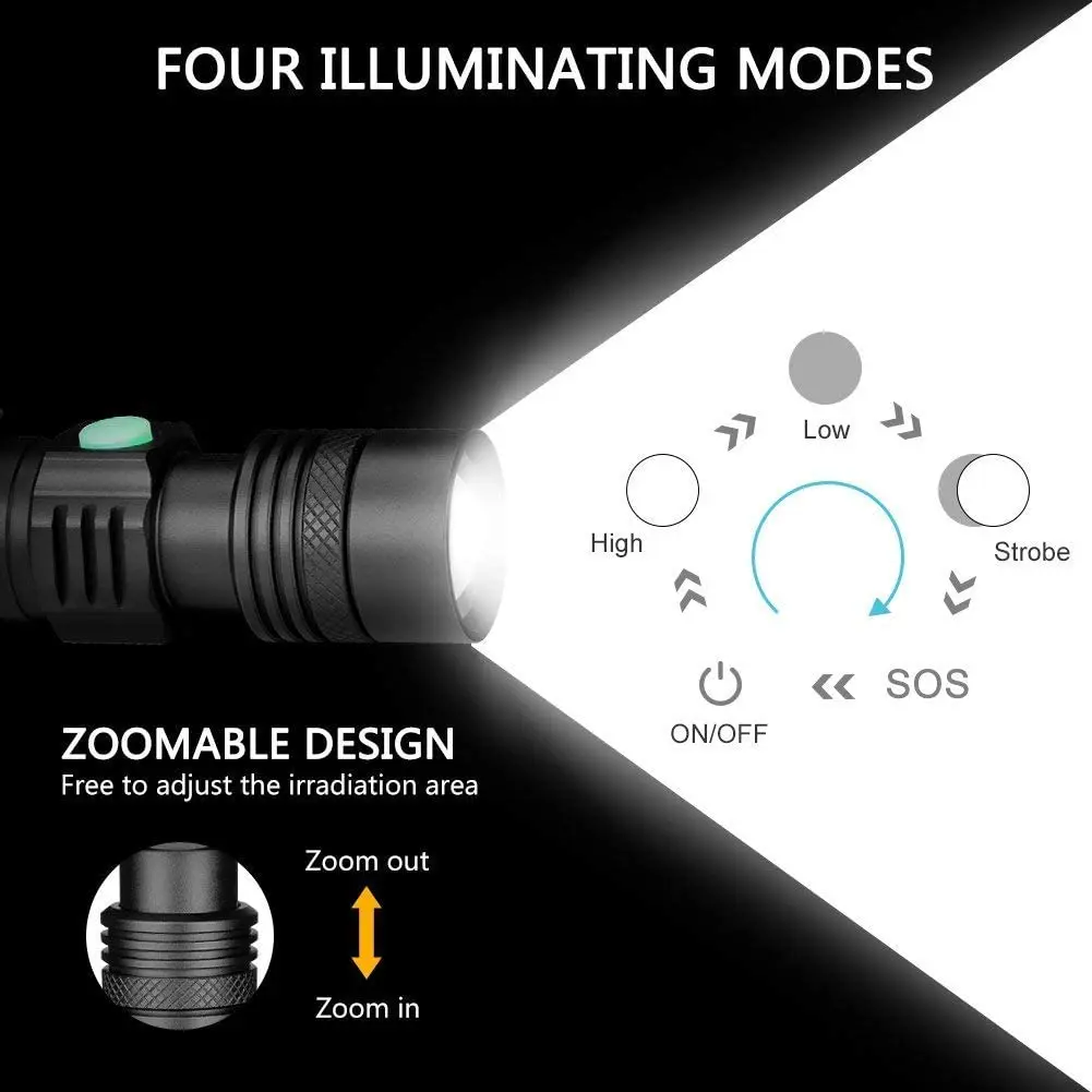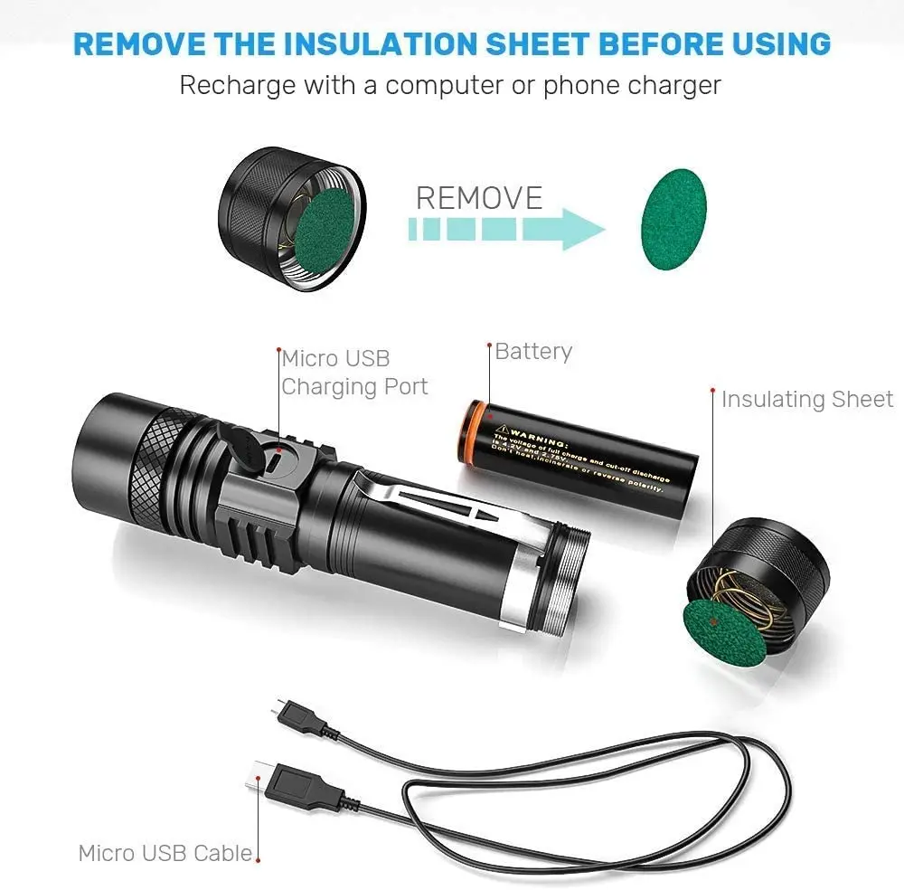 Pocketman LED Flashlights USB Rechargeable Flashlight Bicycle Torch Outdoor Waterproof Flashlight Zoom Torch